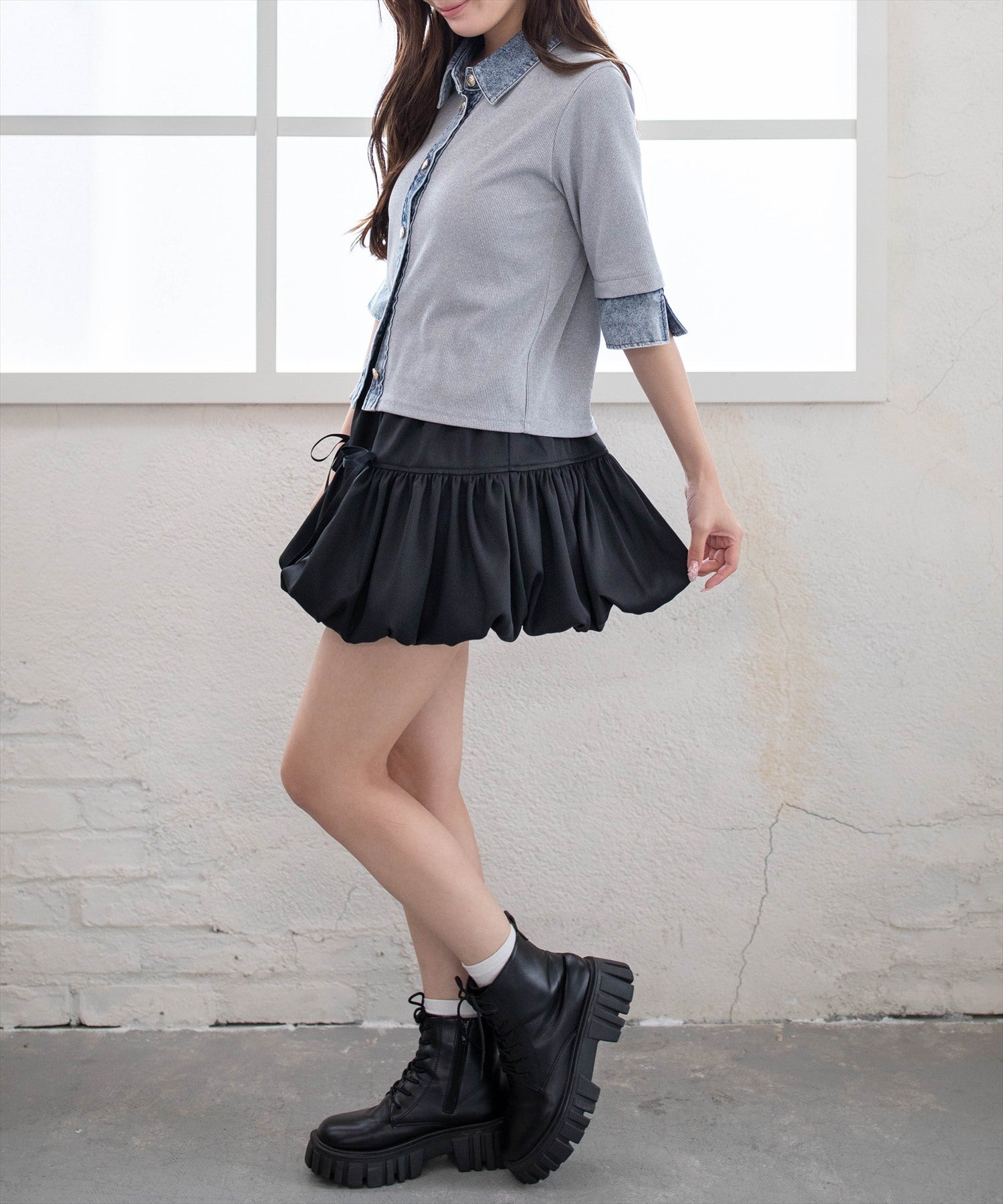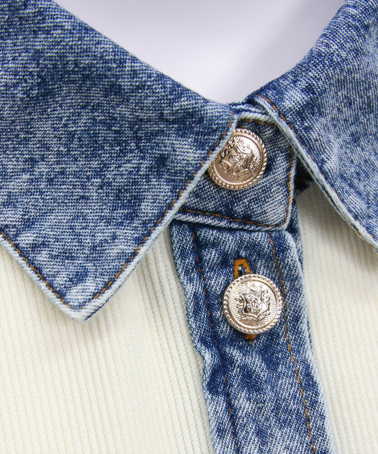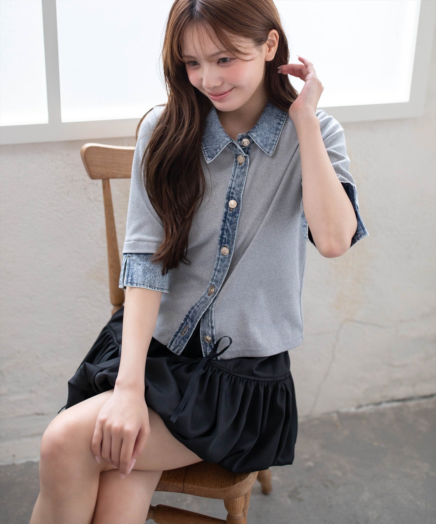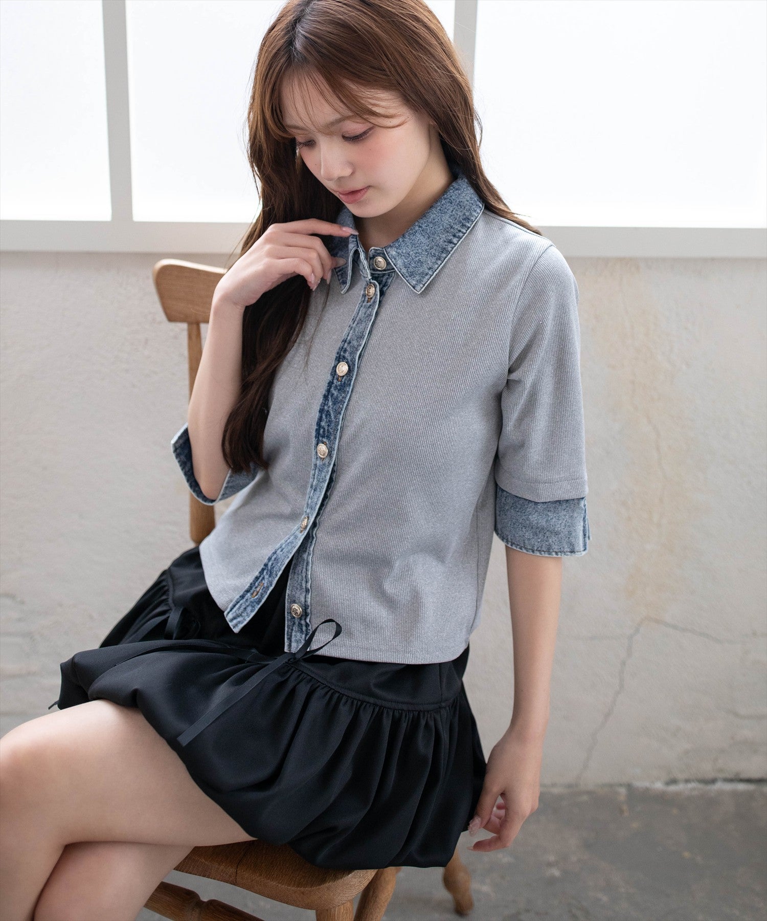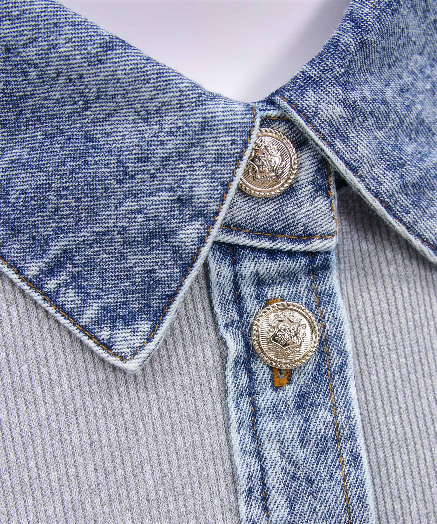 デイリー使い万能トップス♪襟付デニム切替カットソートップス