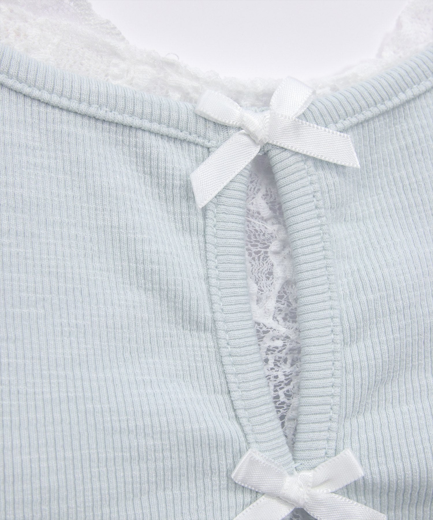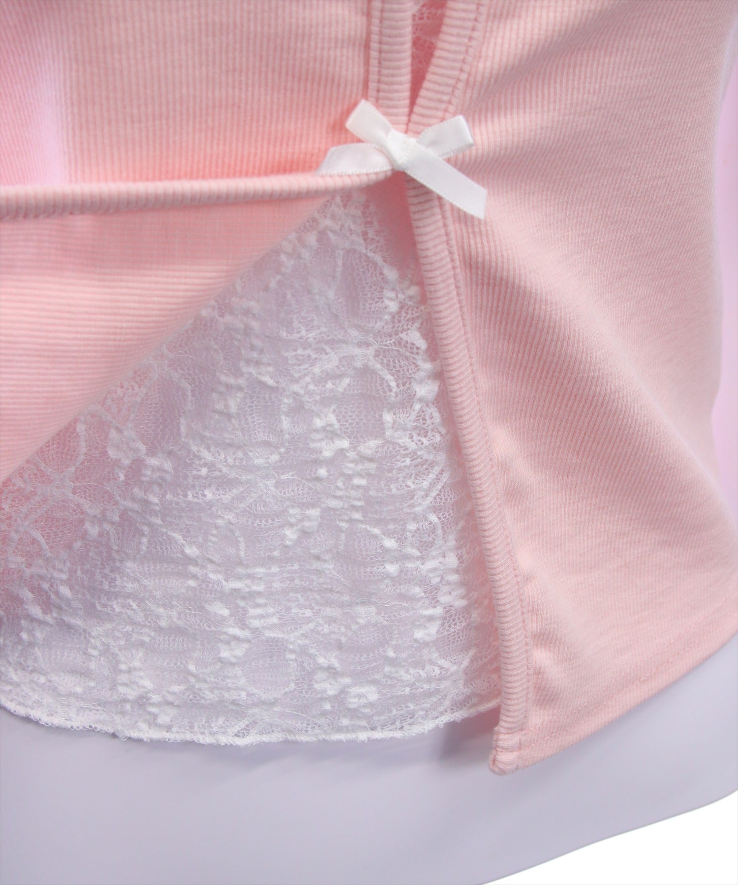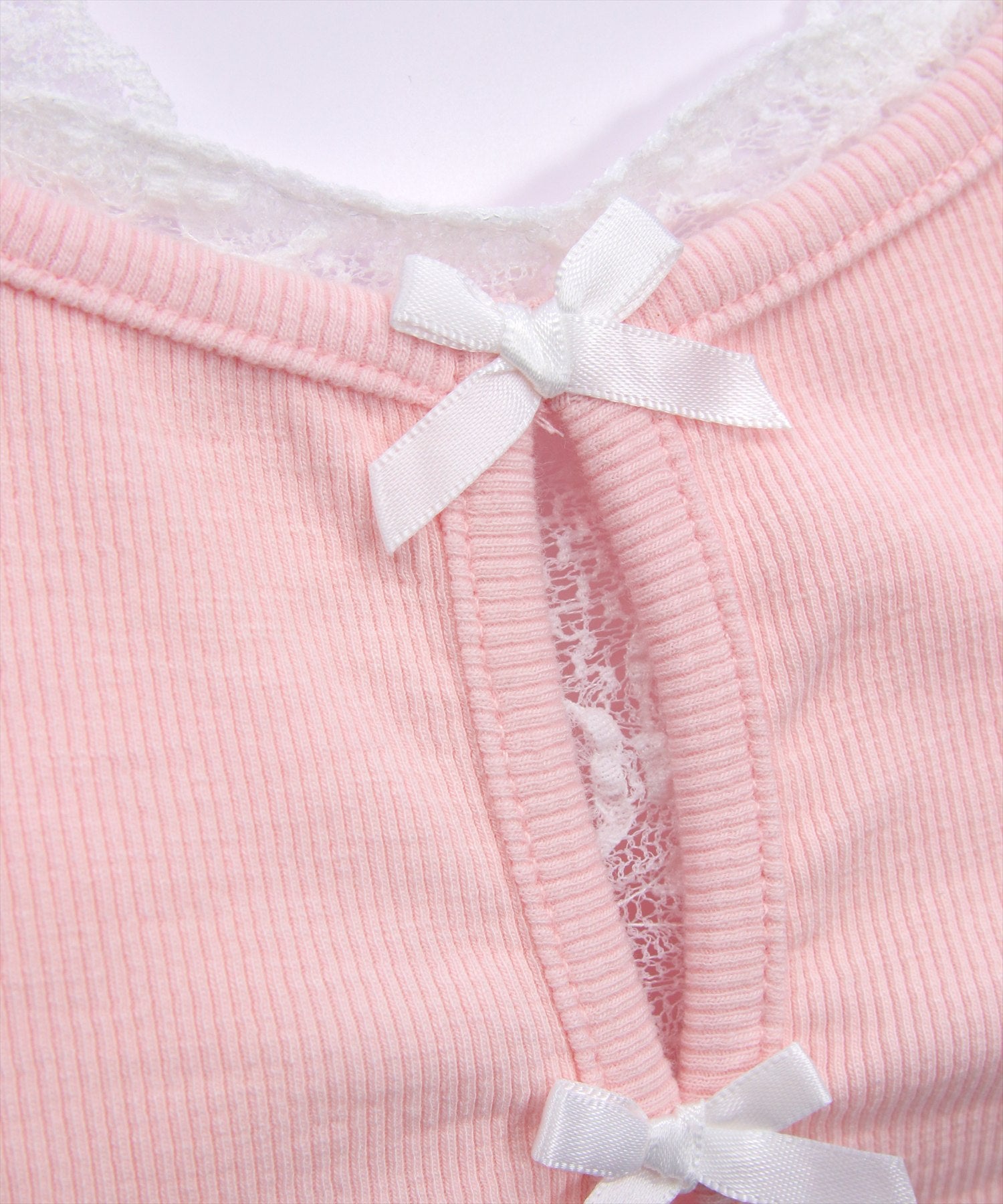 韓国ガーリーなリボントップス♪フロントリボンレースレイヤード風カットソー