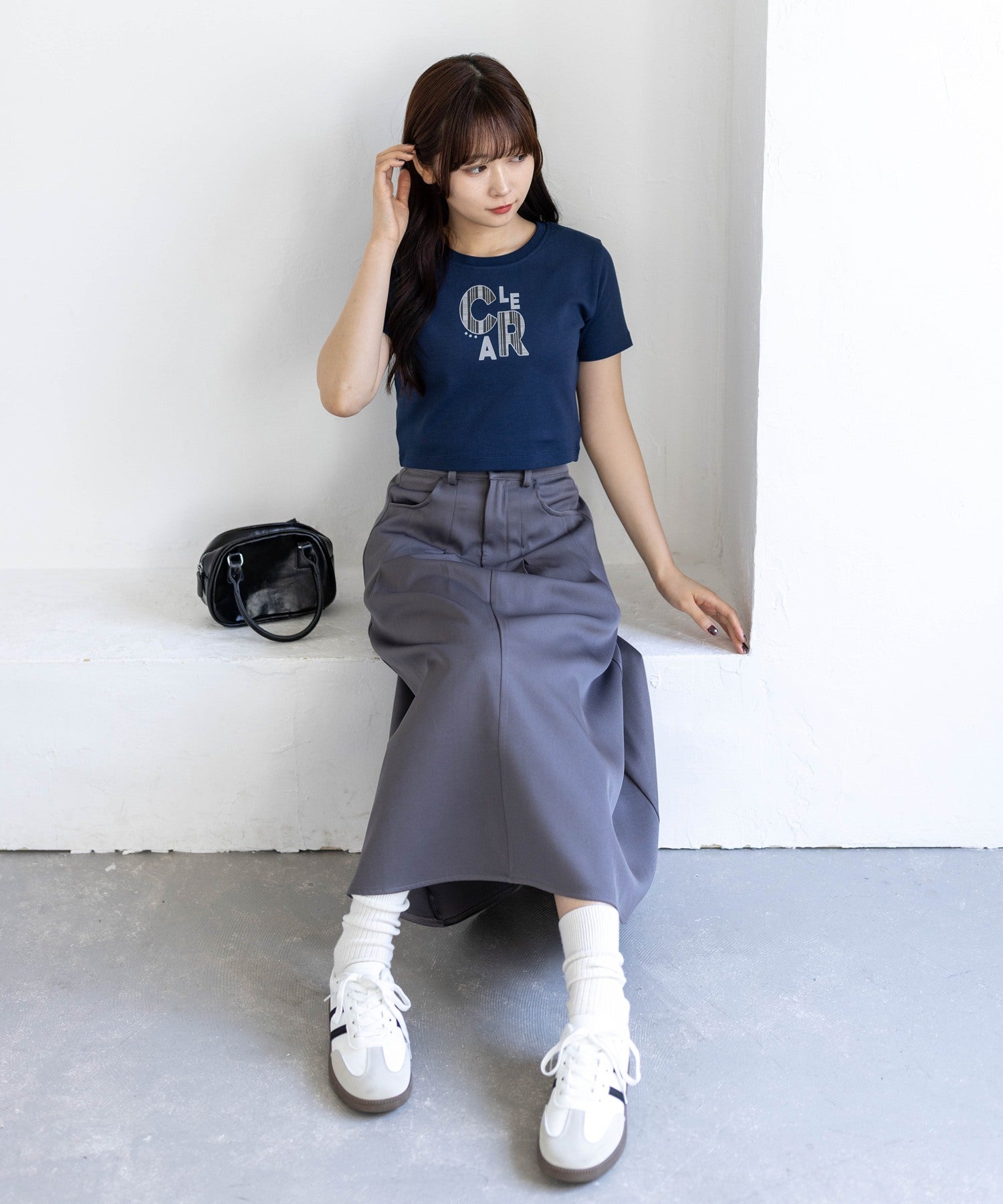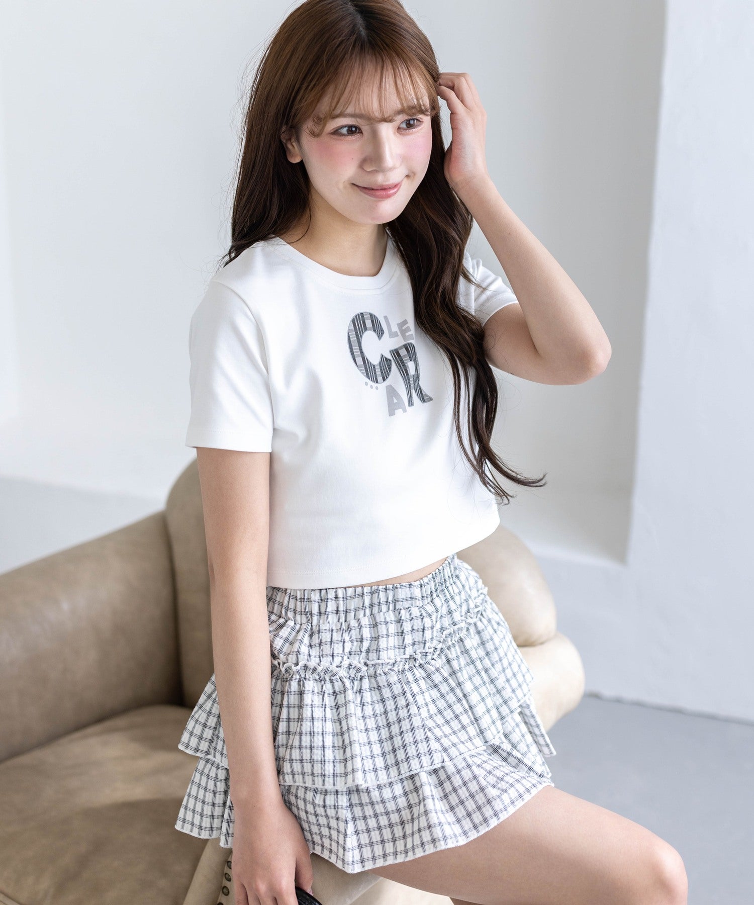 チェック柄のロゴが主役!チェック柄ロゴチビT【デザイン】チェック柄をロゴに落とし込んだ、遊び心のあるデザインTシャツ。程よくフィットし、ウエストラインをすっきり見せてくれます◎伸縮性のあるやわらかな素材感で、着心地も快適♪【コーディネート】プリーツミニスカートにローファーを合わせてフェミニンミックスコーデに。センタープレスパンツにサンダルを合わせて大人きれいめコーデにも◎キャミワンピやビスチェのインナーにも相性抜群です!