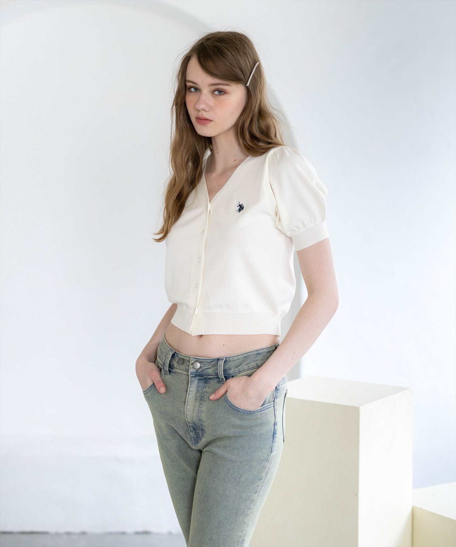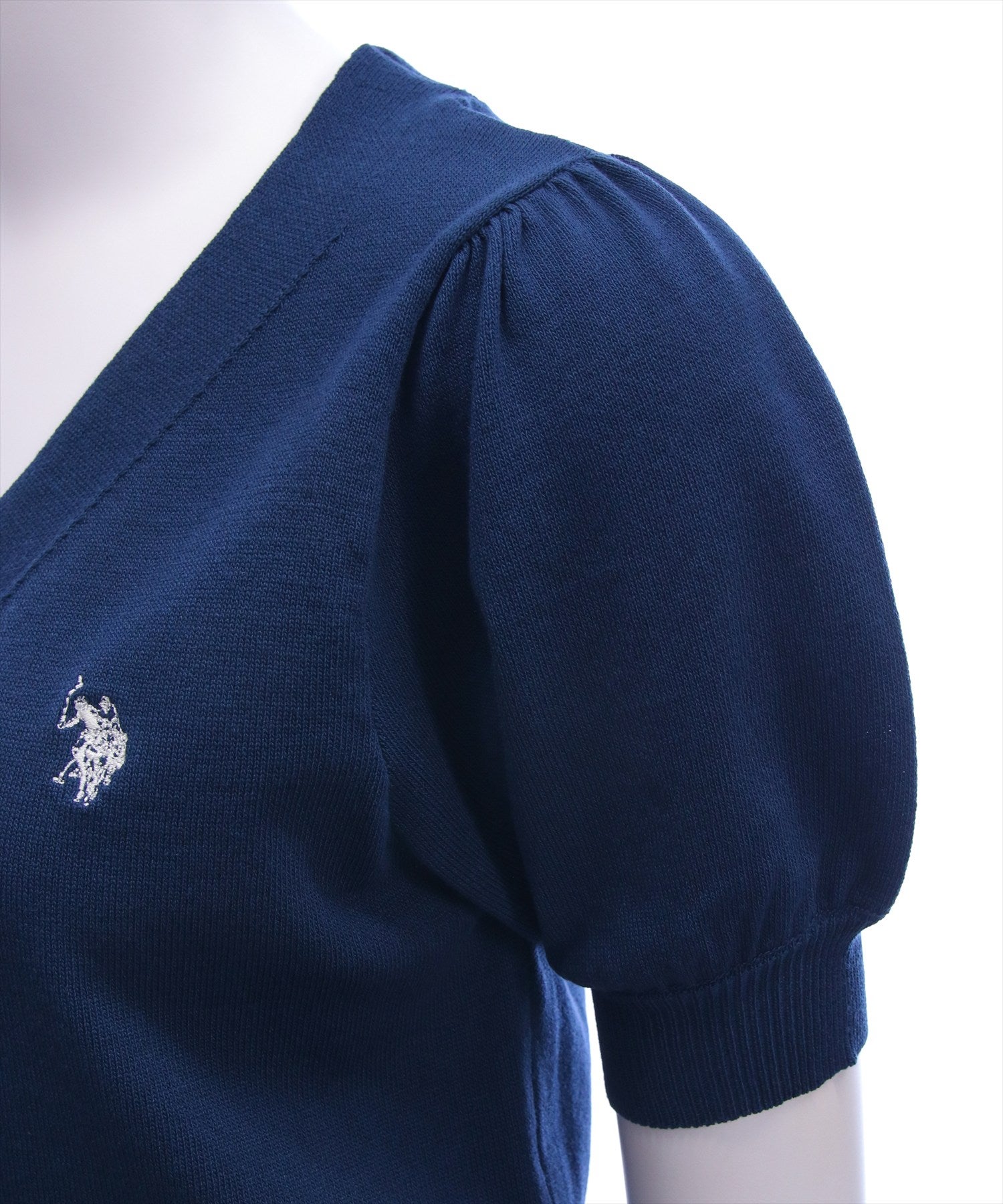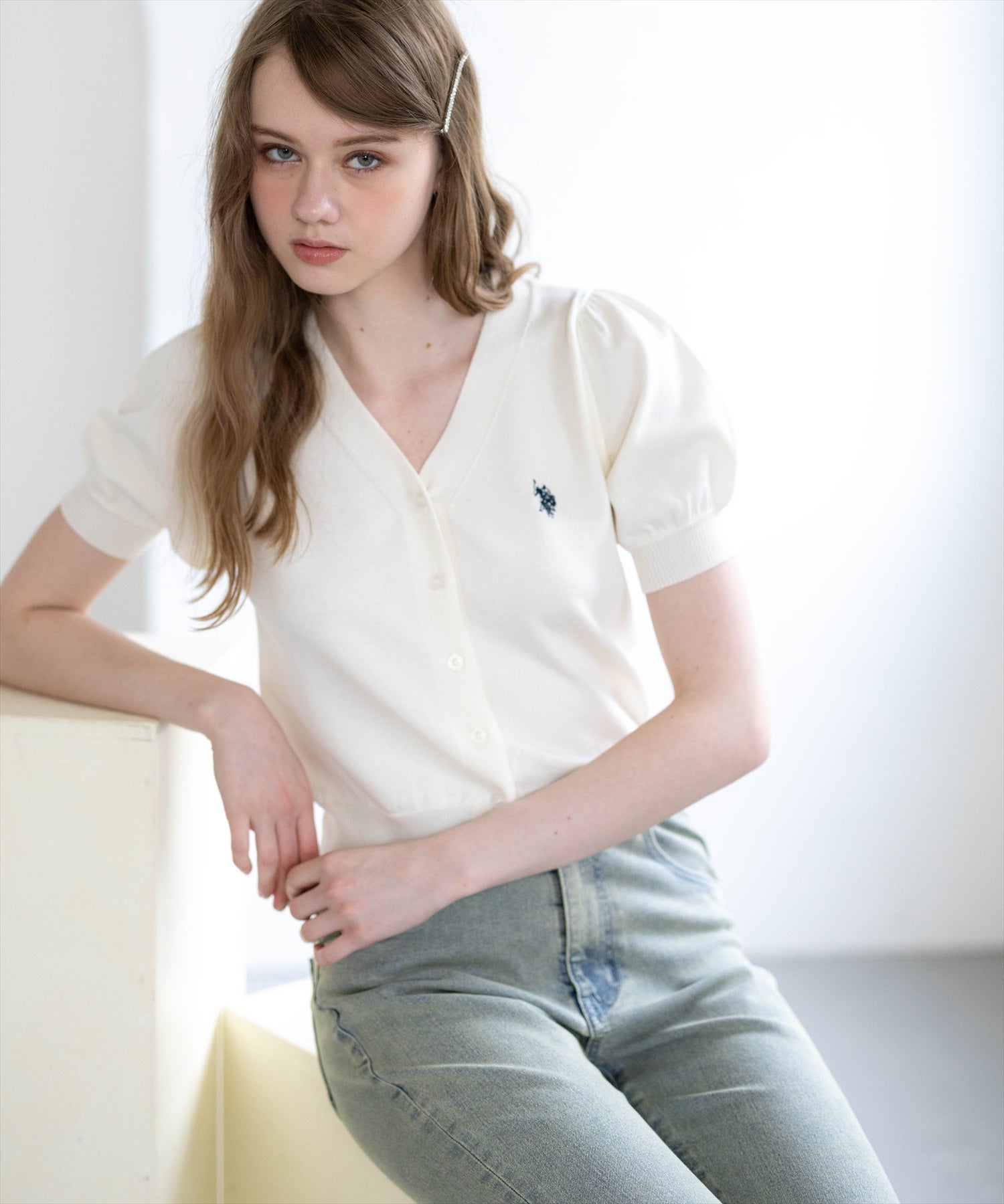 全米ポロ協会公式ブランド「U.S. POLO ASSN.」とclearがコラボレーション。伝統とスポーツマインドを感じさせる、ダブルホースマンロゴが魅力 /さりげない品格を!U.S. POLO ASSN. パフスリーブ半袖コンパクトニットカーディガン