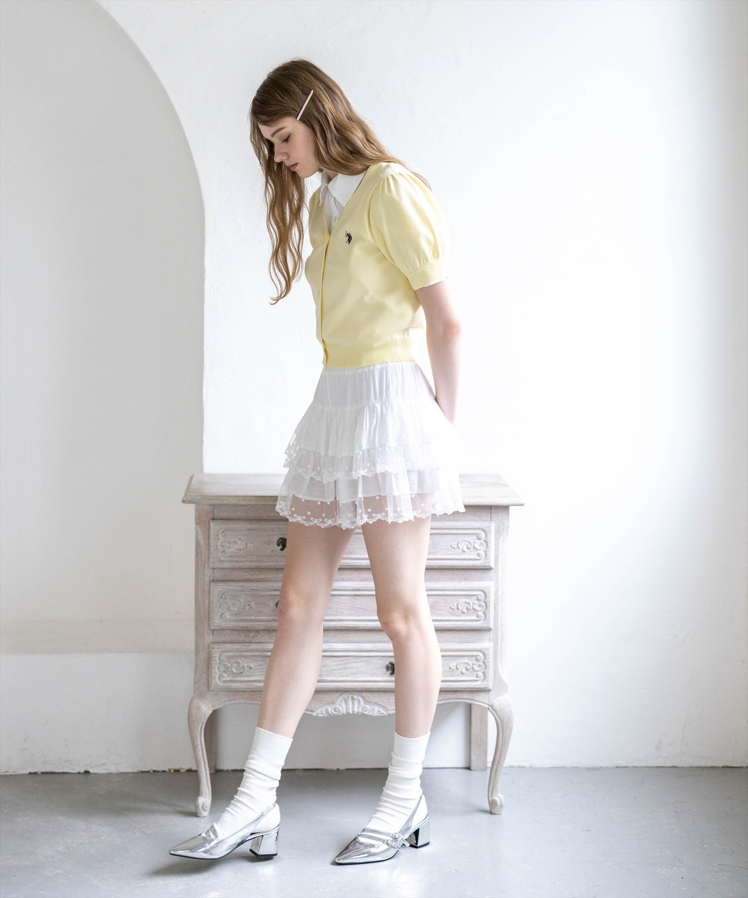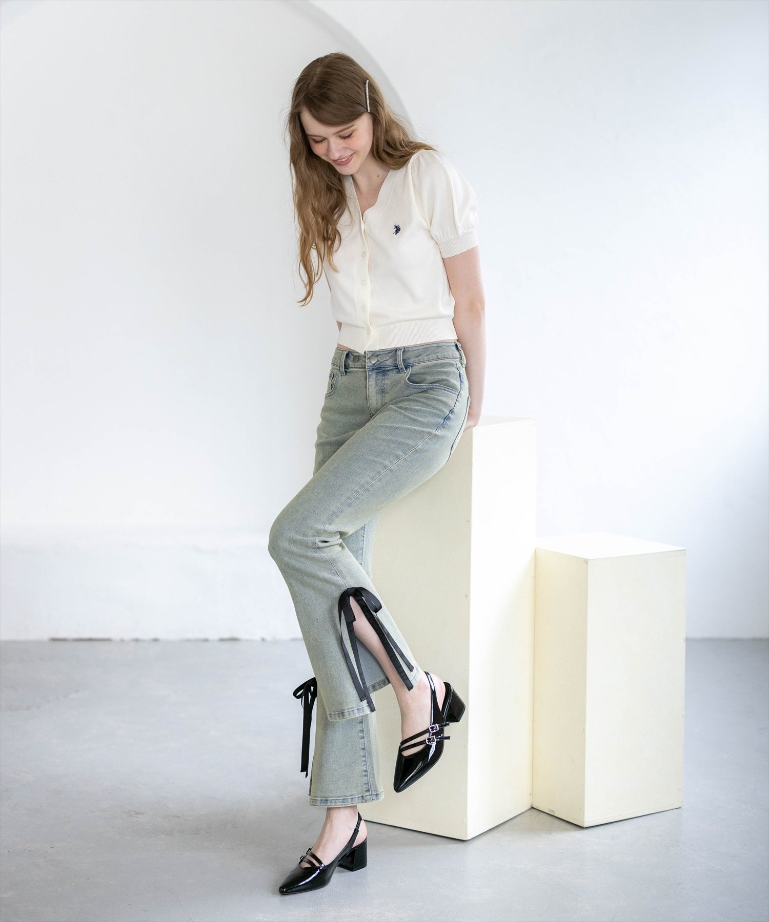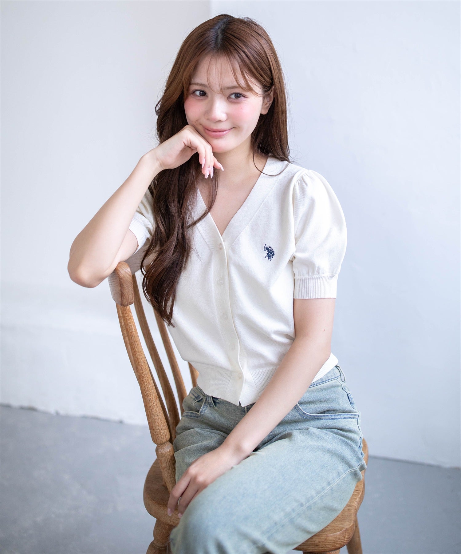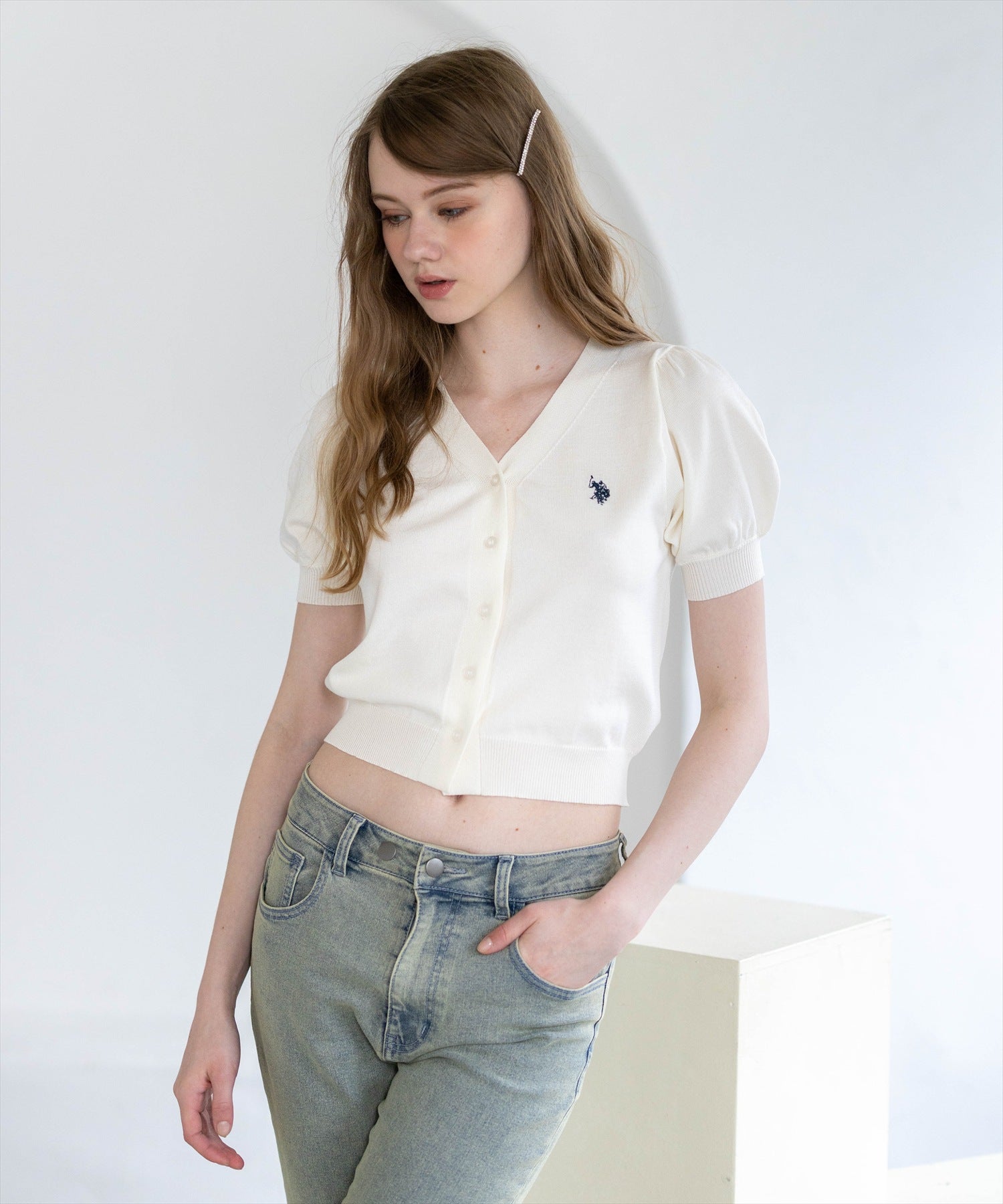 全米ポロ協会公式ブランド「U.S. POLO ASSN.」とclearがコラボレーション。伝統とスポーツマインドを感じさせる、ダブルホースマンロゴが魅力 /さりげない品格を!U.S. POLO ASSN. パフスリーブ半袖コンパクトニットカーディガン