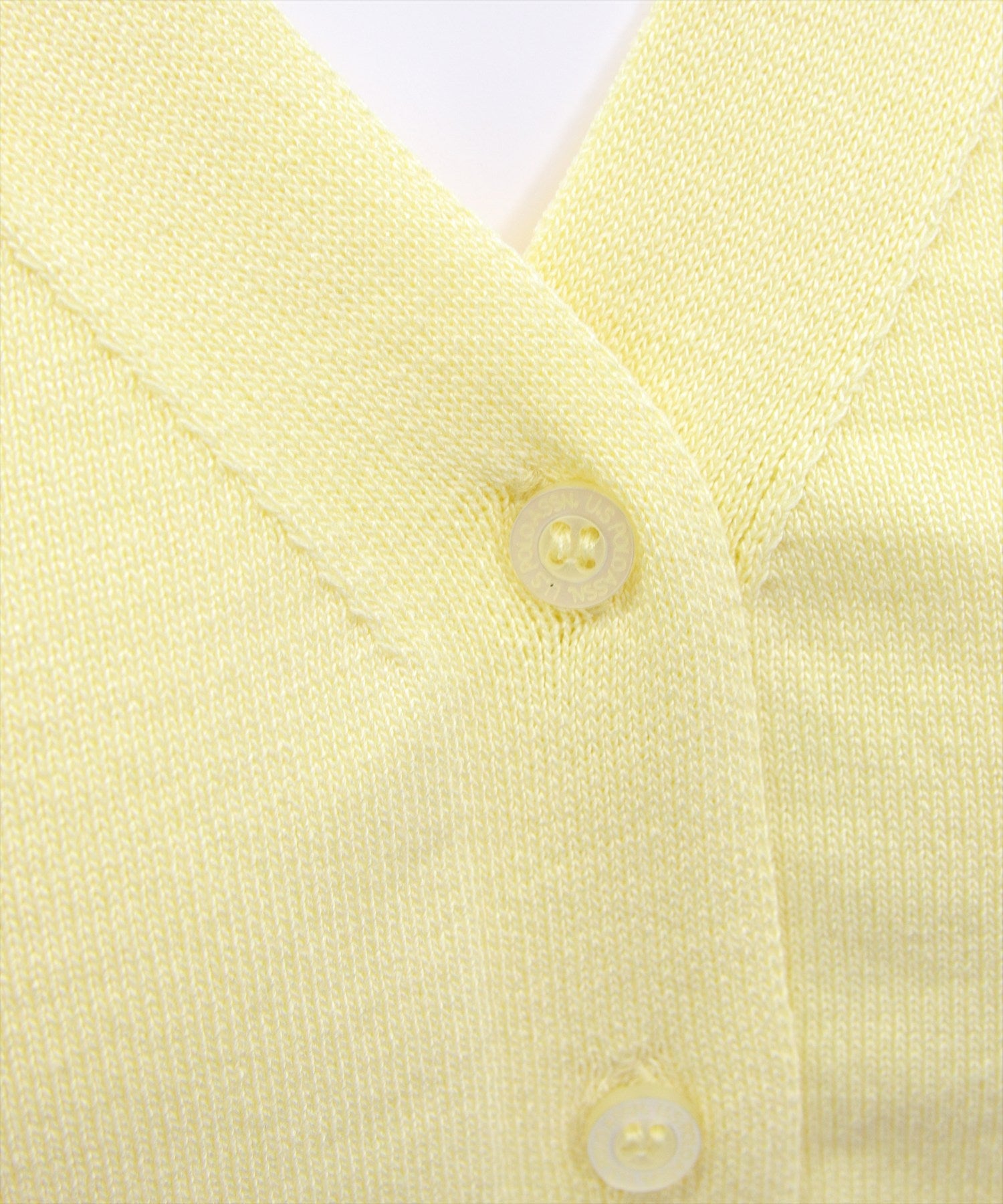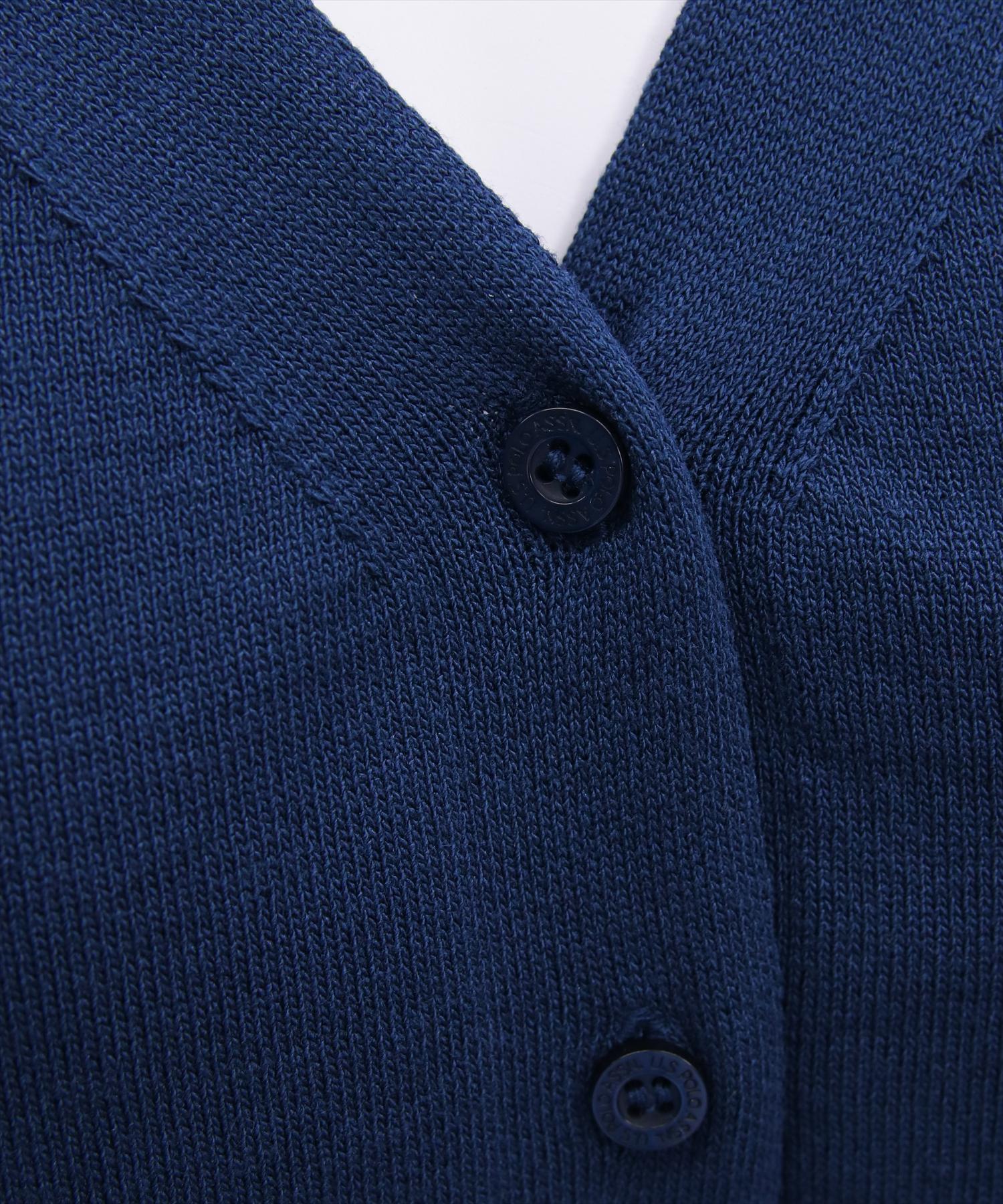 コンパクトなシルエットとVネックデザインが、デコルテラインを美しく見せ、女性らしい印象を演出してくれるニットカーディガン。袖口と裾のリブが程よくフィットし、スタイルアップ効果も◎シンプルながらも程よく品のあるデザインで、オンオフ問わず使える万能アイテム♪