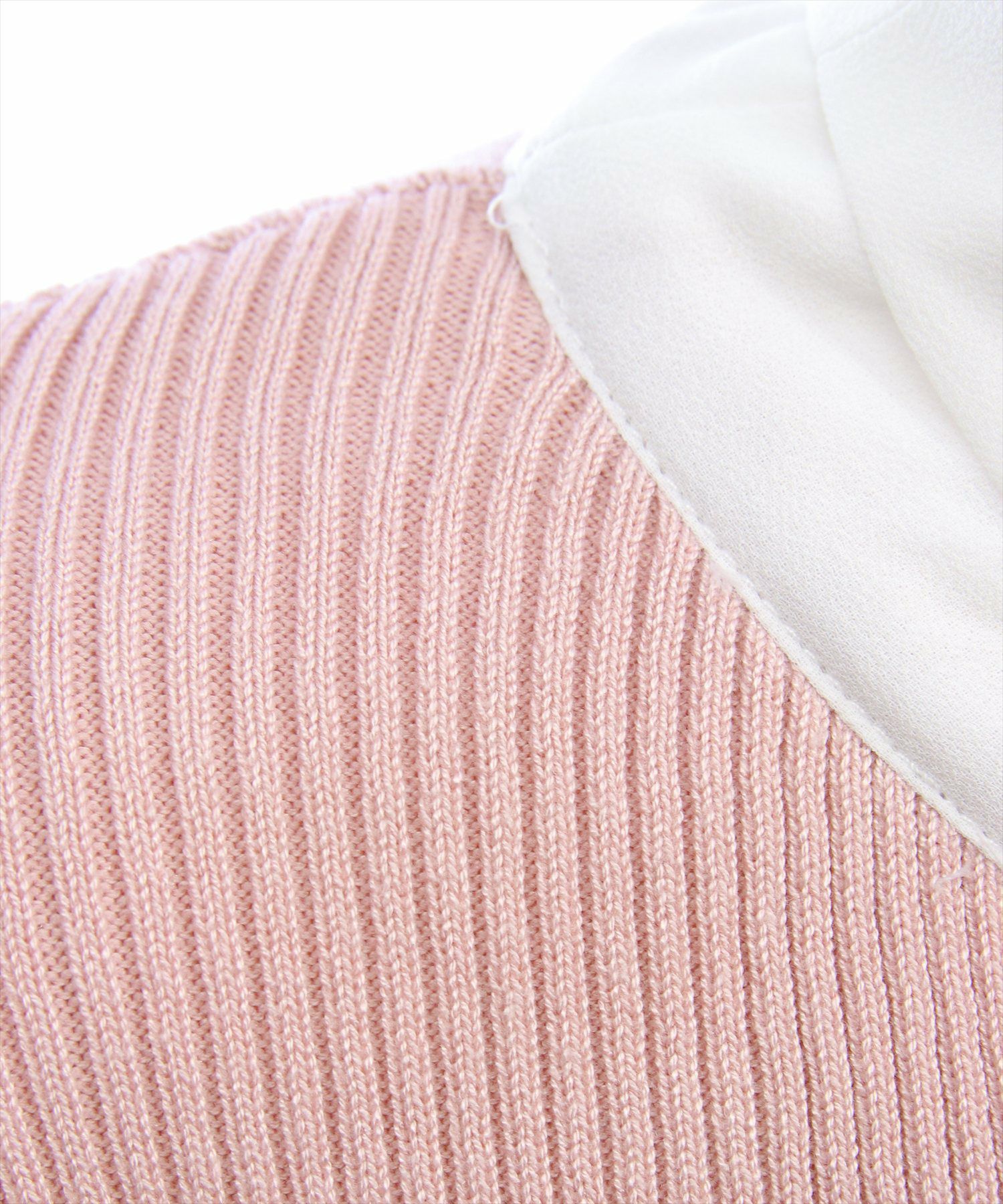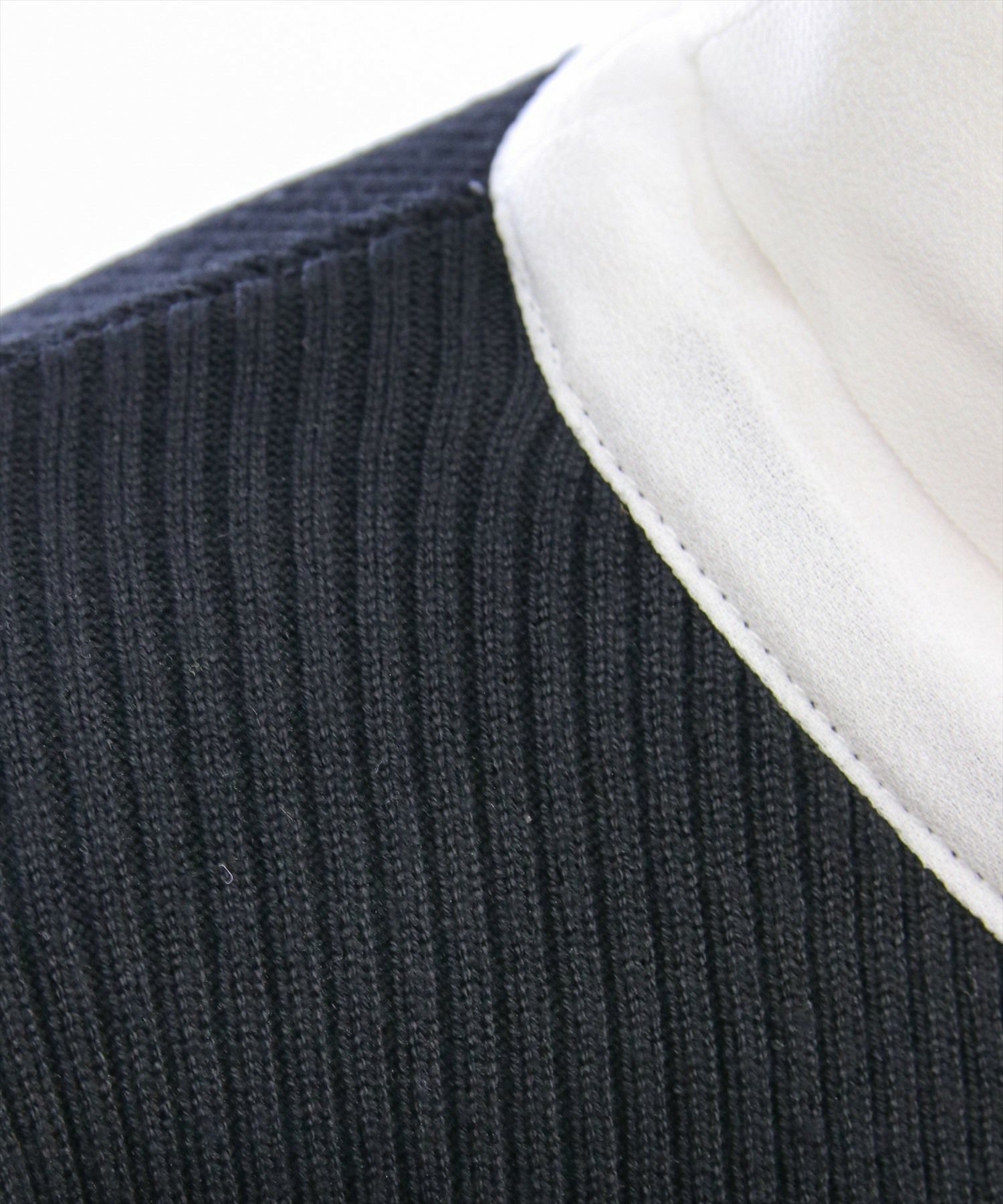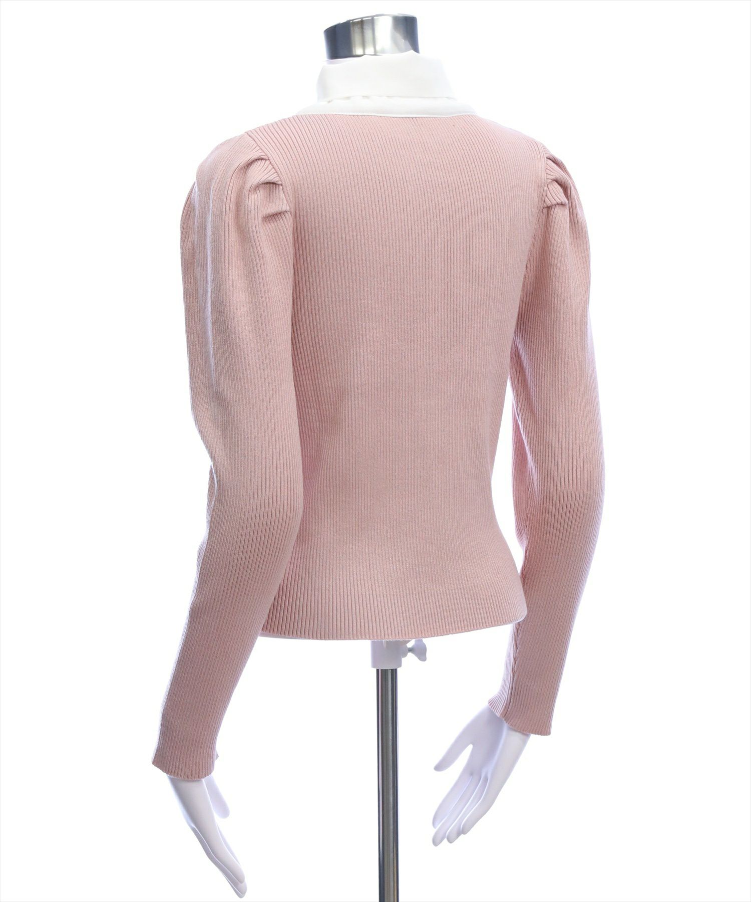 1枚で華やかに決まる!布帛ボウタイパワショルニットトップス