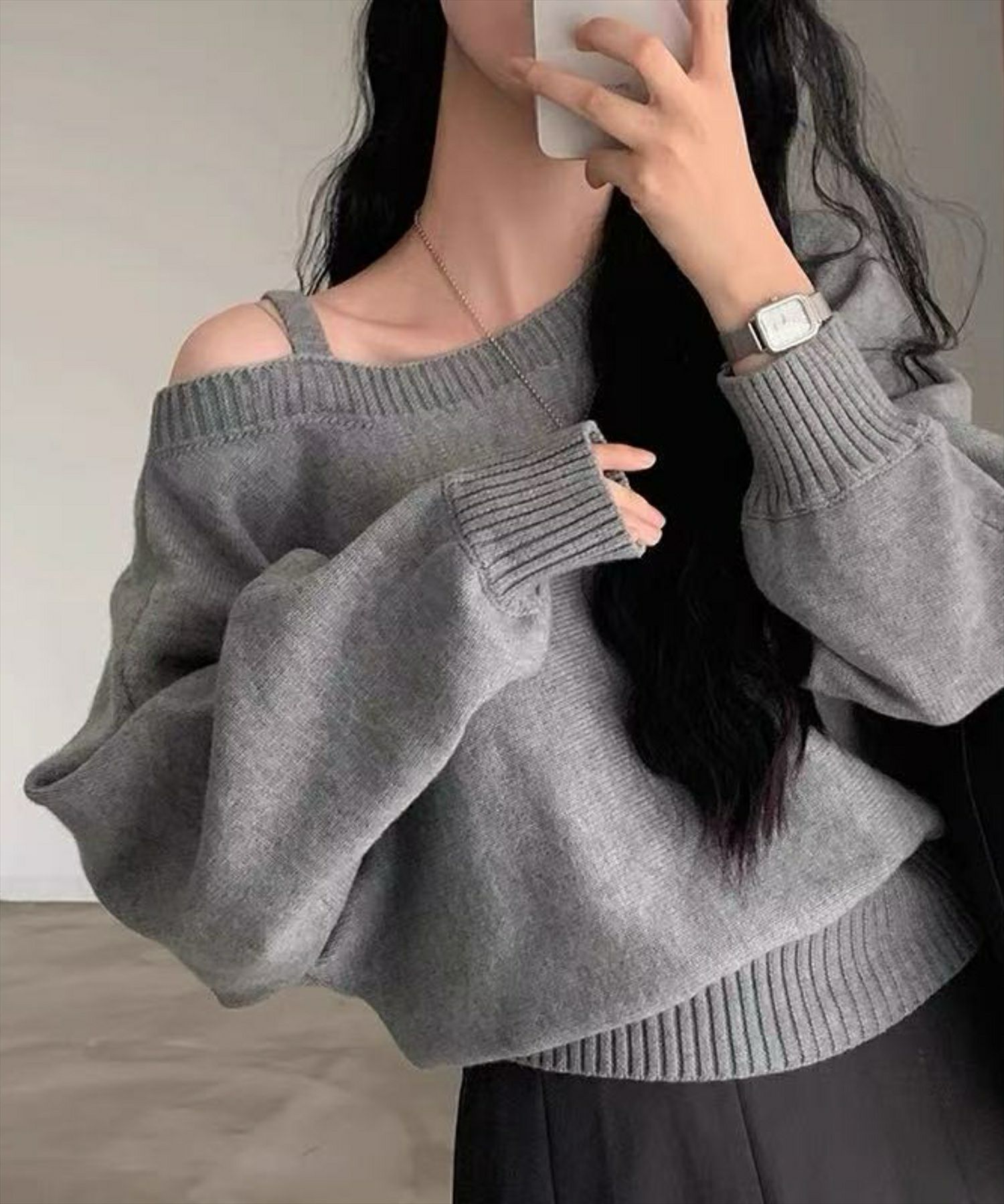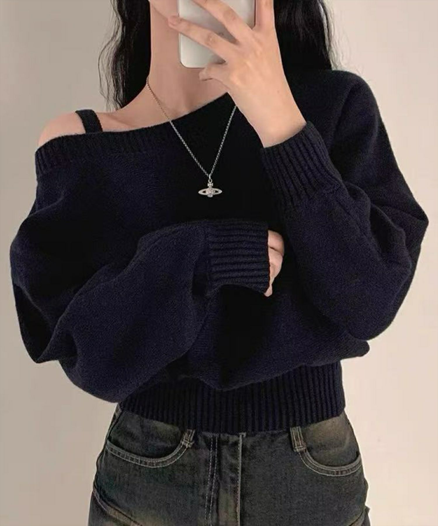 ワンショルダーで魅せる大人の魅力!ワンショルダーニットトップス