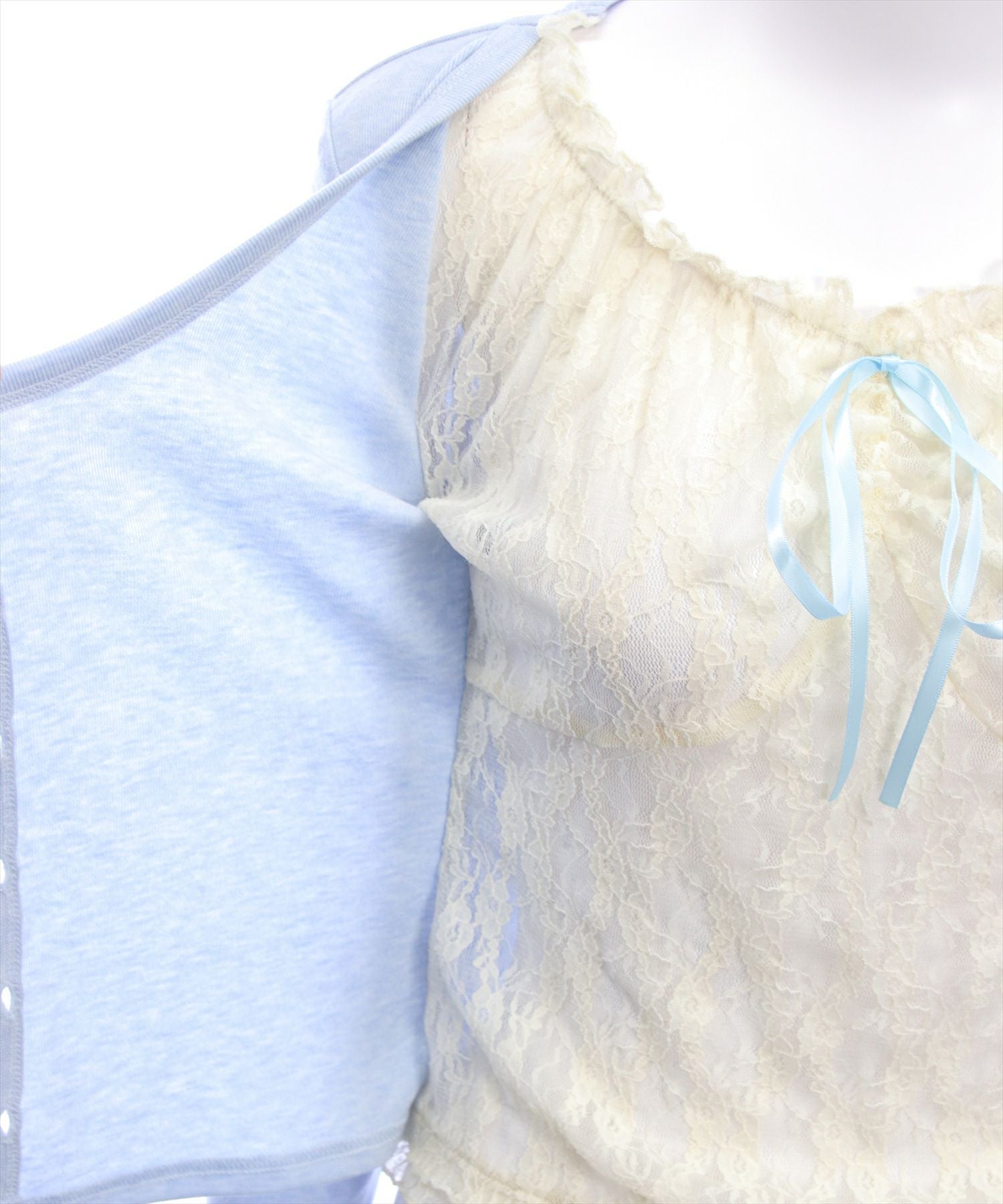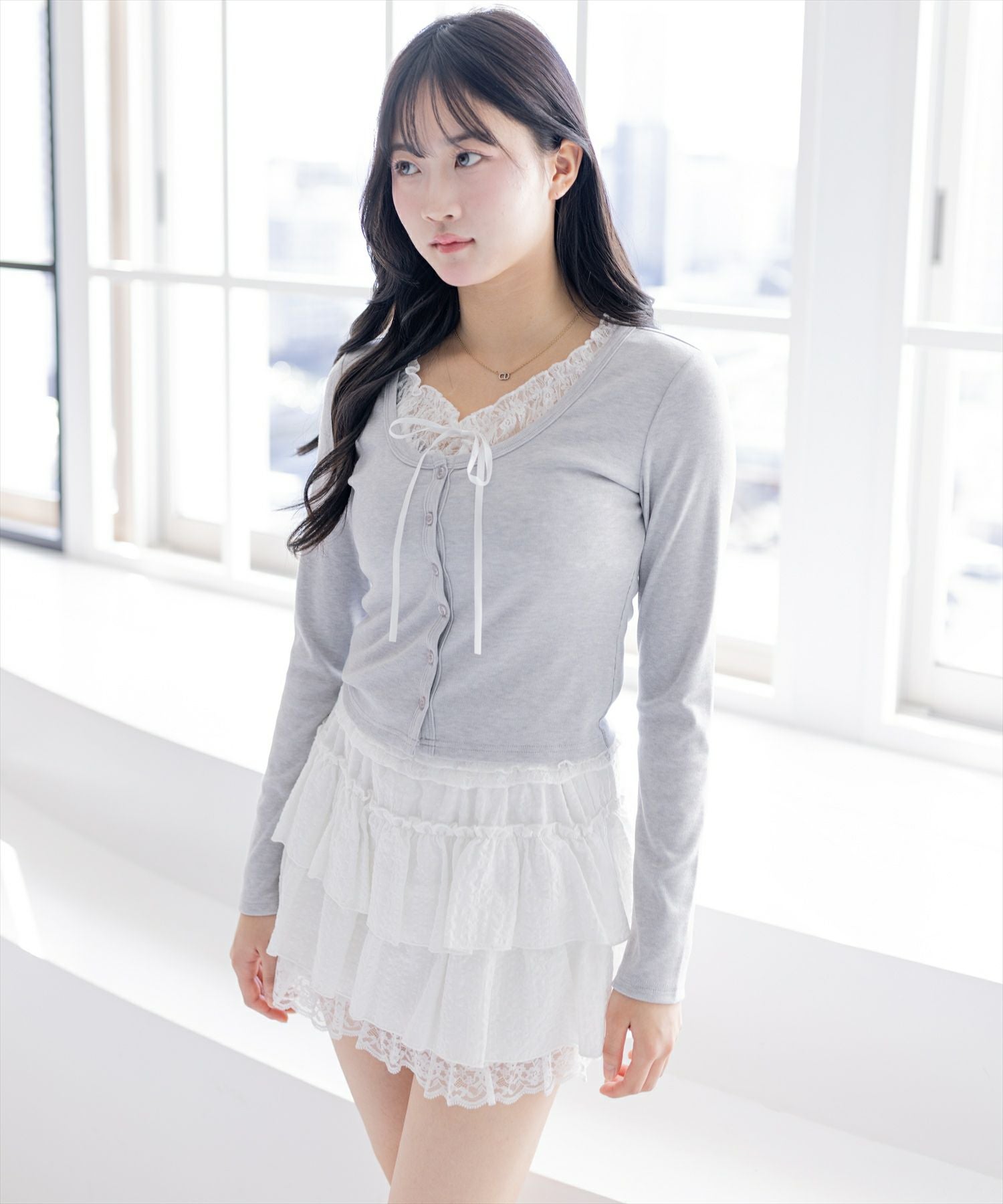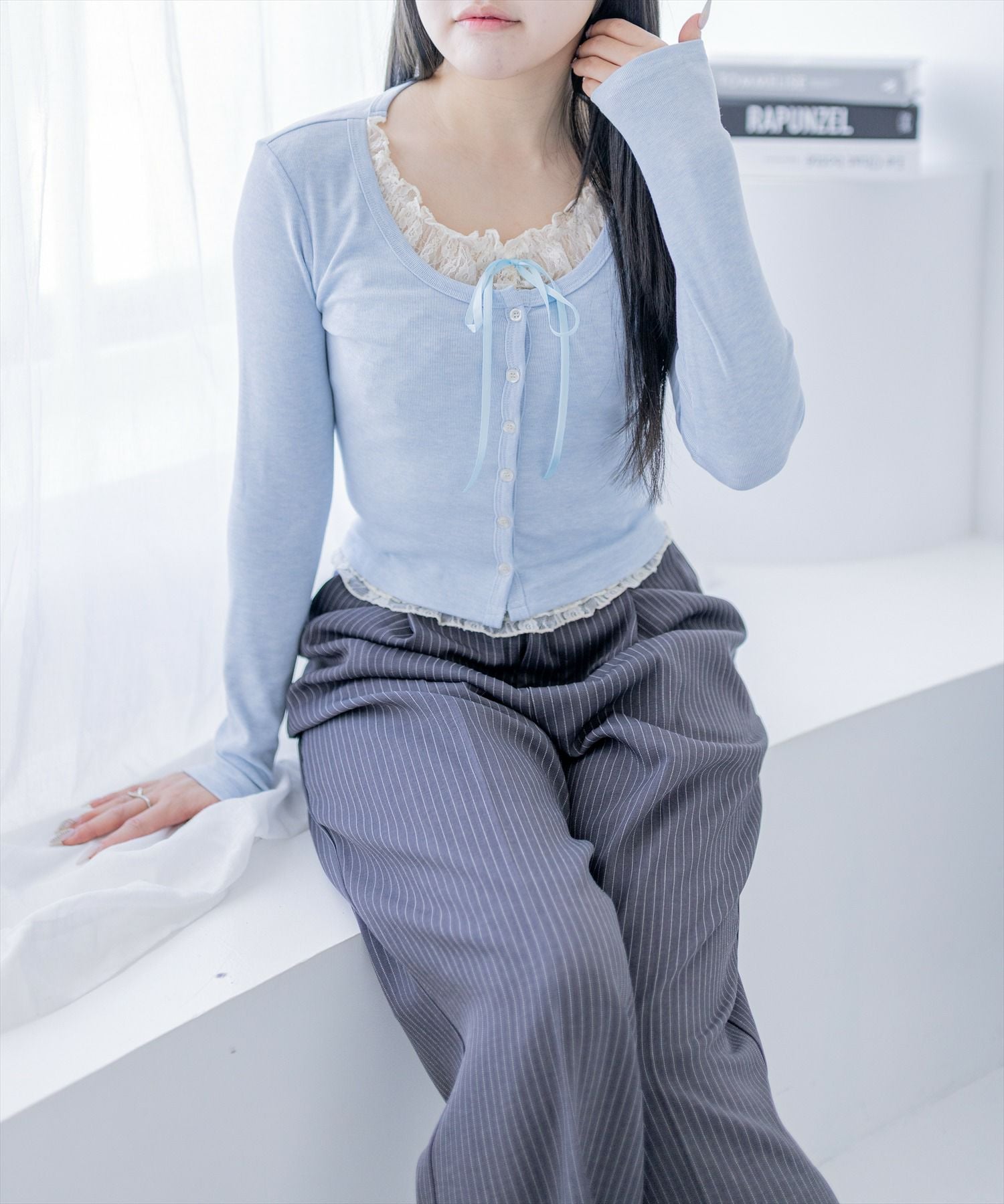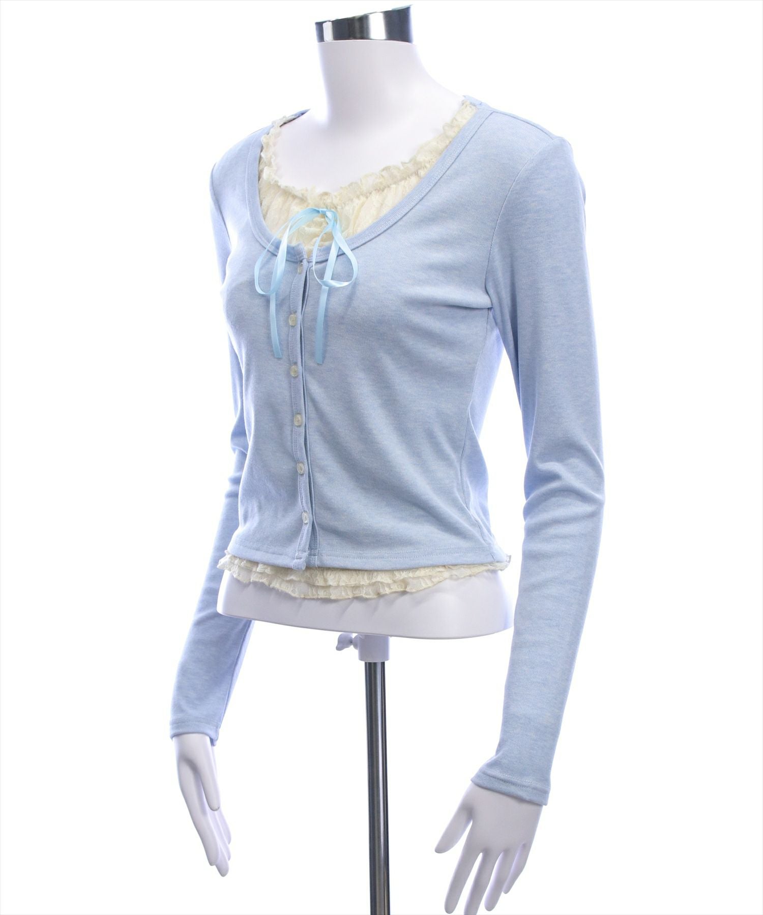 clear≪新作≫フロントリボン付きレースレイヤードカットソー[CL9719]