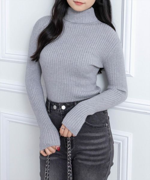 clear≪再入荷≫タートルネックベーシックリブニットトップス[CL6498]