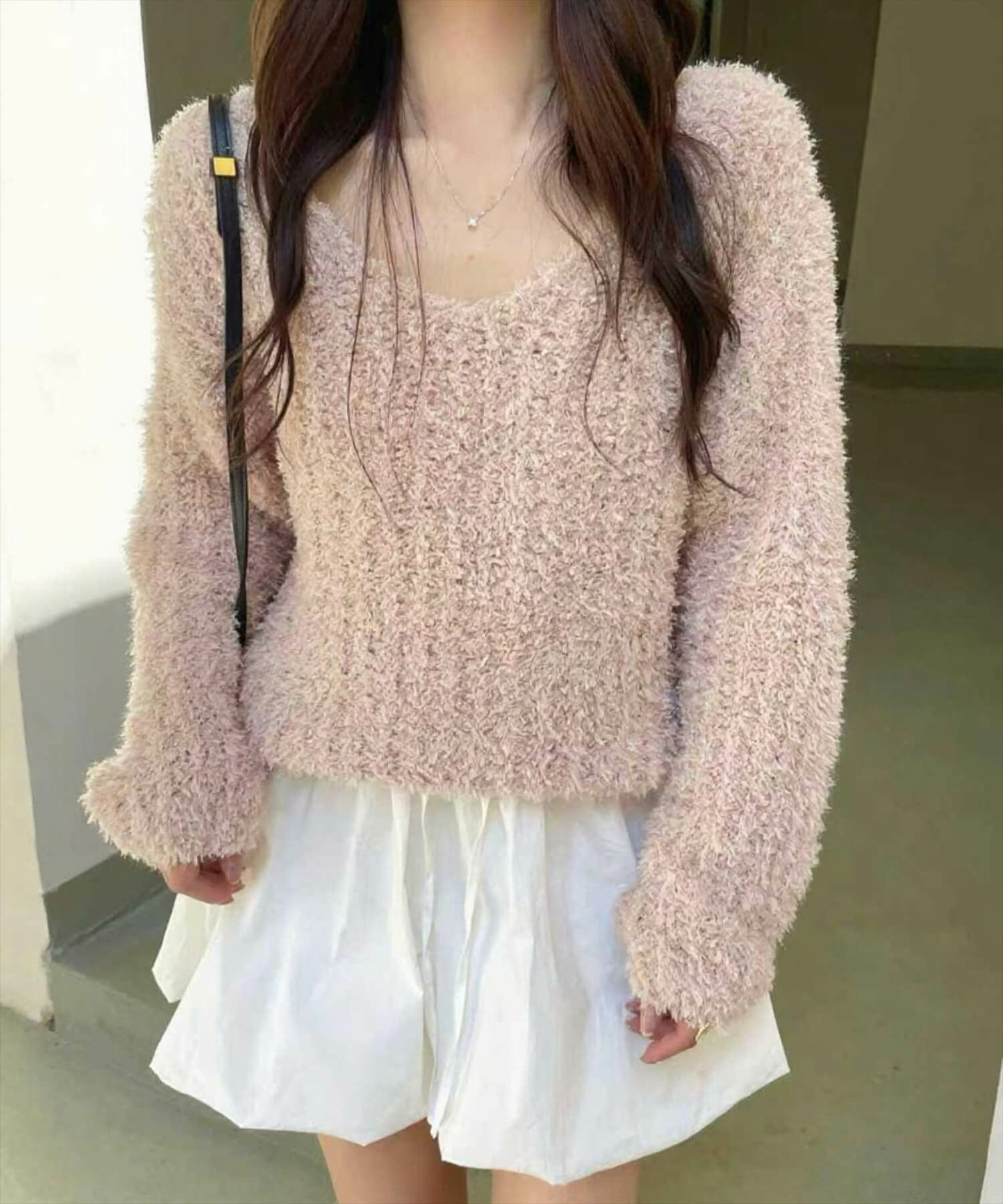 clear≪AW新作≫2way刺繍入りアンサンブルニットトップス[CL9165]