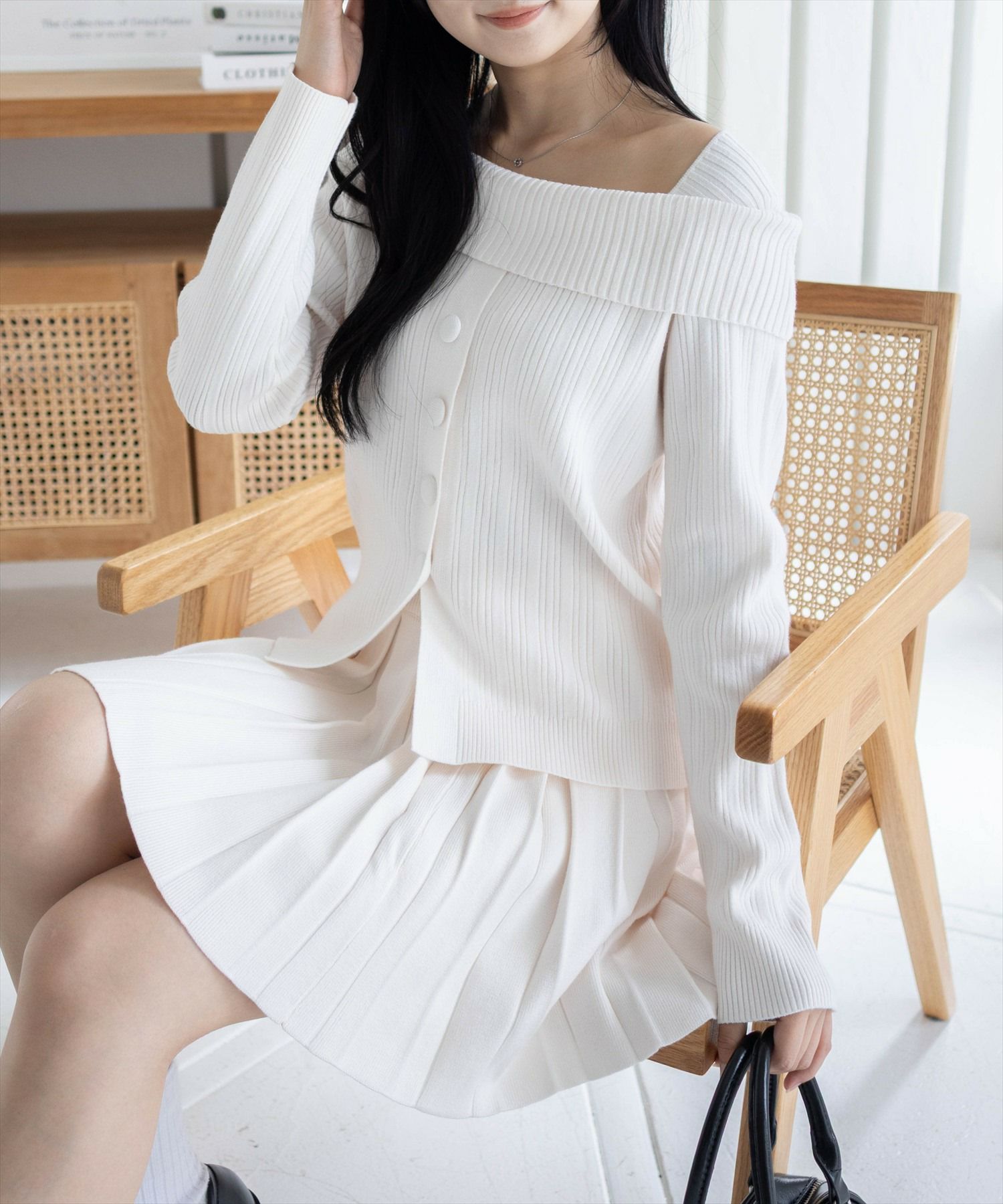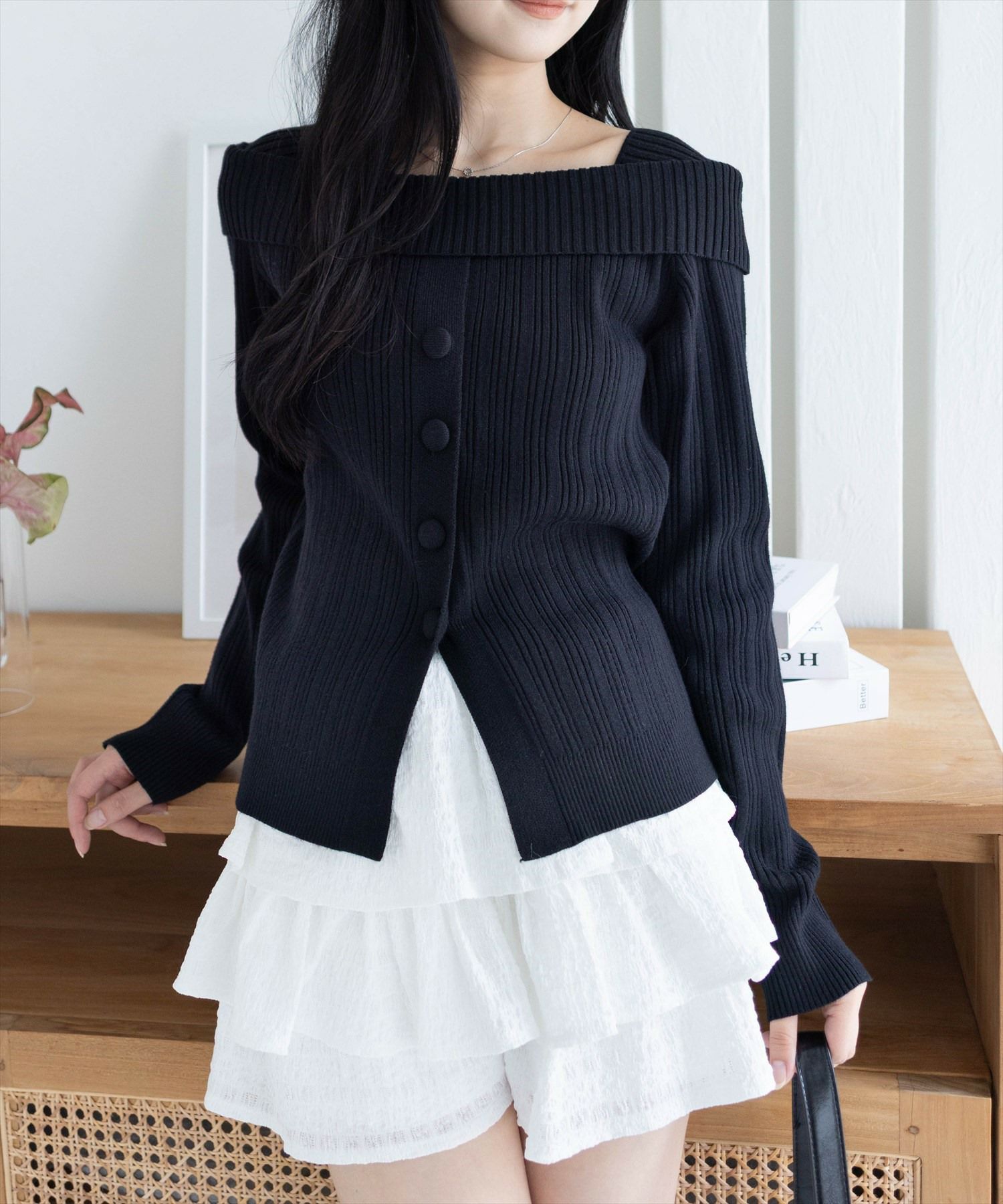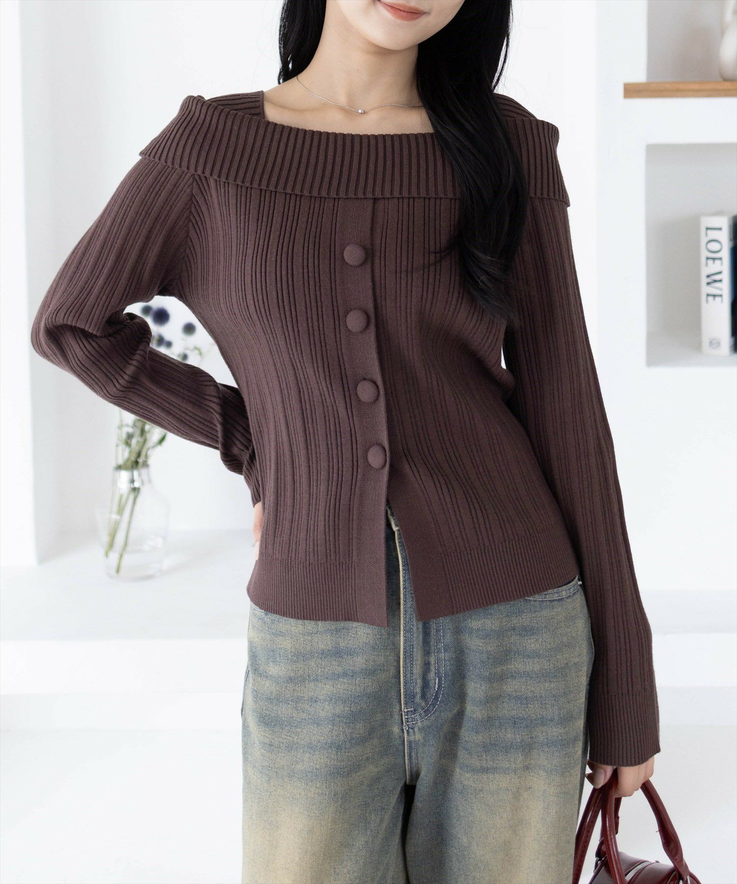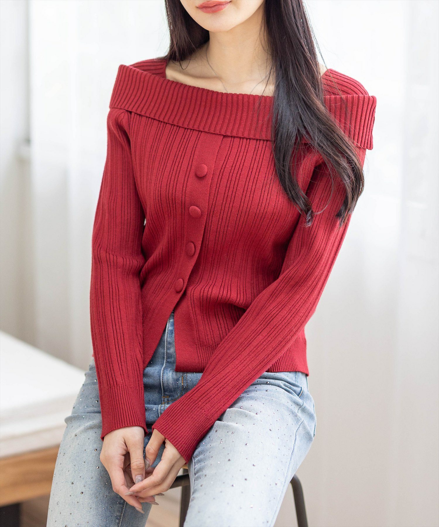 CLEAR BASIC≪AW新作/再入荷≫オフショル風ボタンリブニットトップス[CL9167]