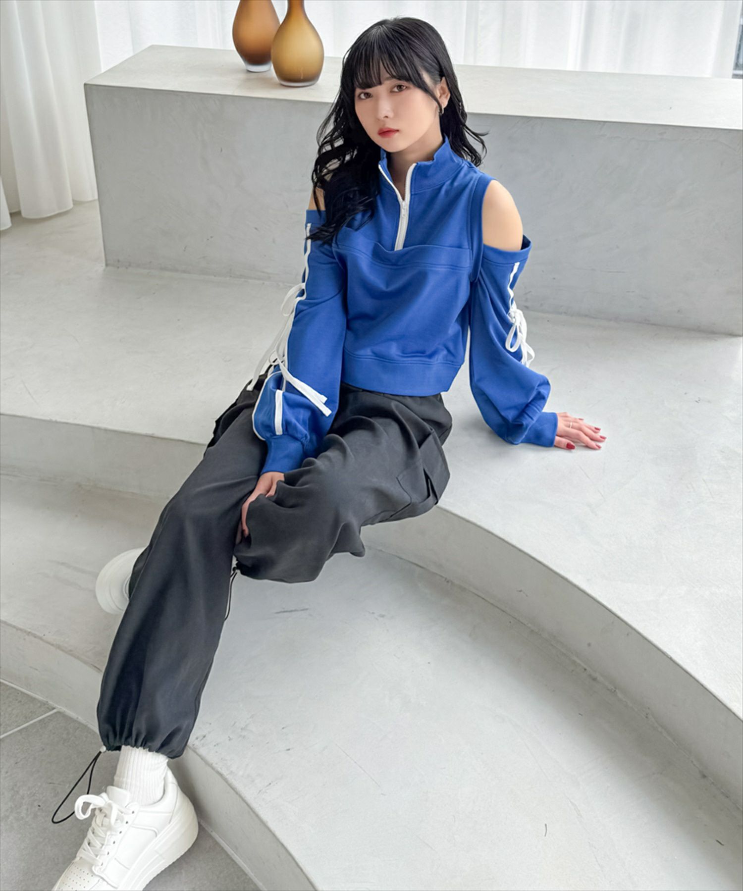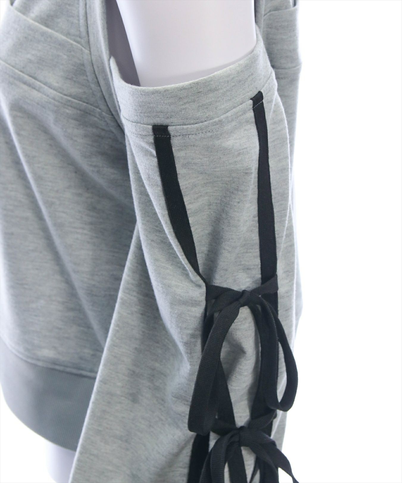 clear 袖リボンオープンショルダー裏毛スウェットトップス[CL8914]