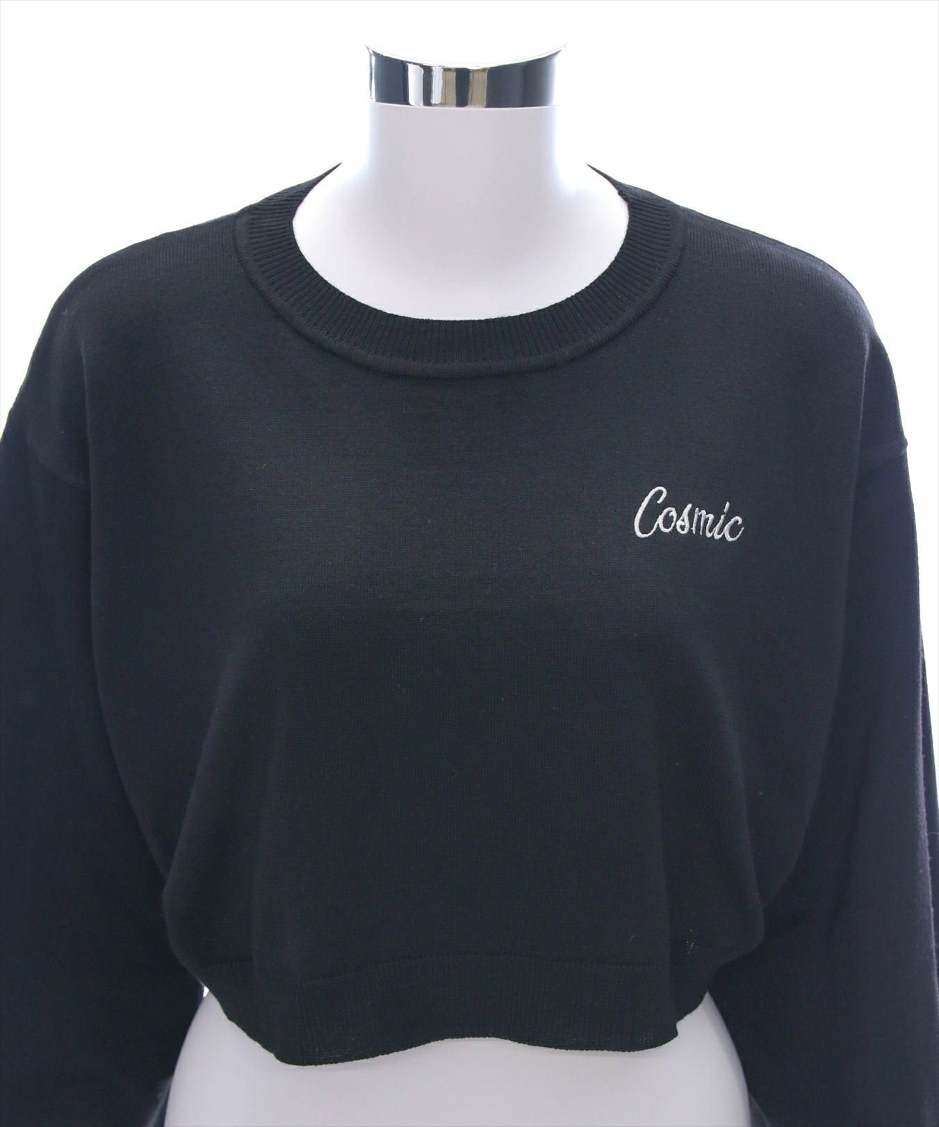 clear ワンポイント刺繍スウェットライクニットトップス[CL8975]