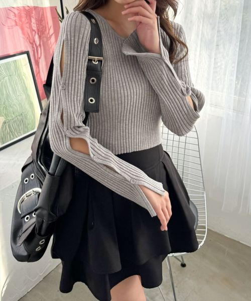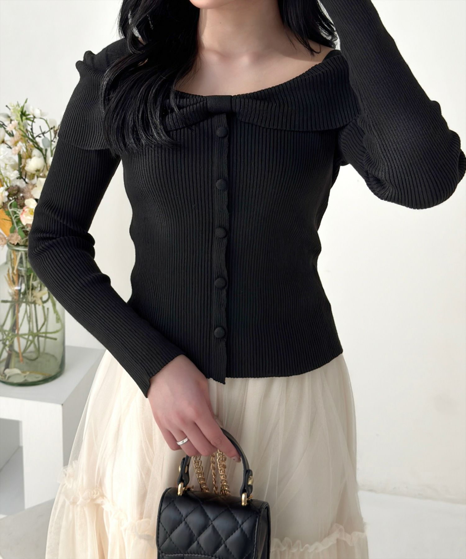 clear ビジューボタンリボンデザインオフショルニット[CL9077]