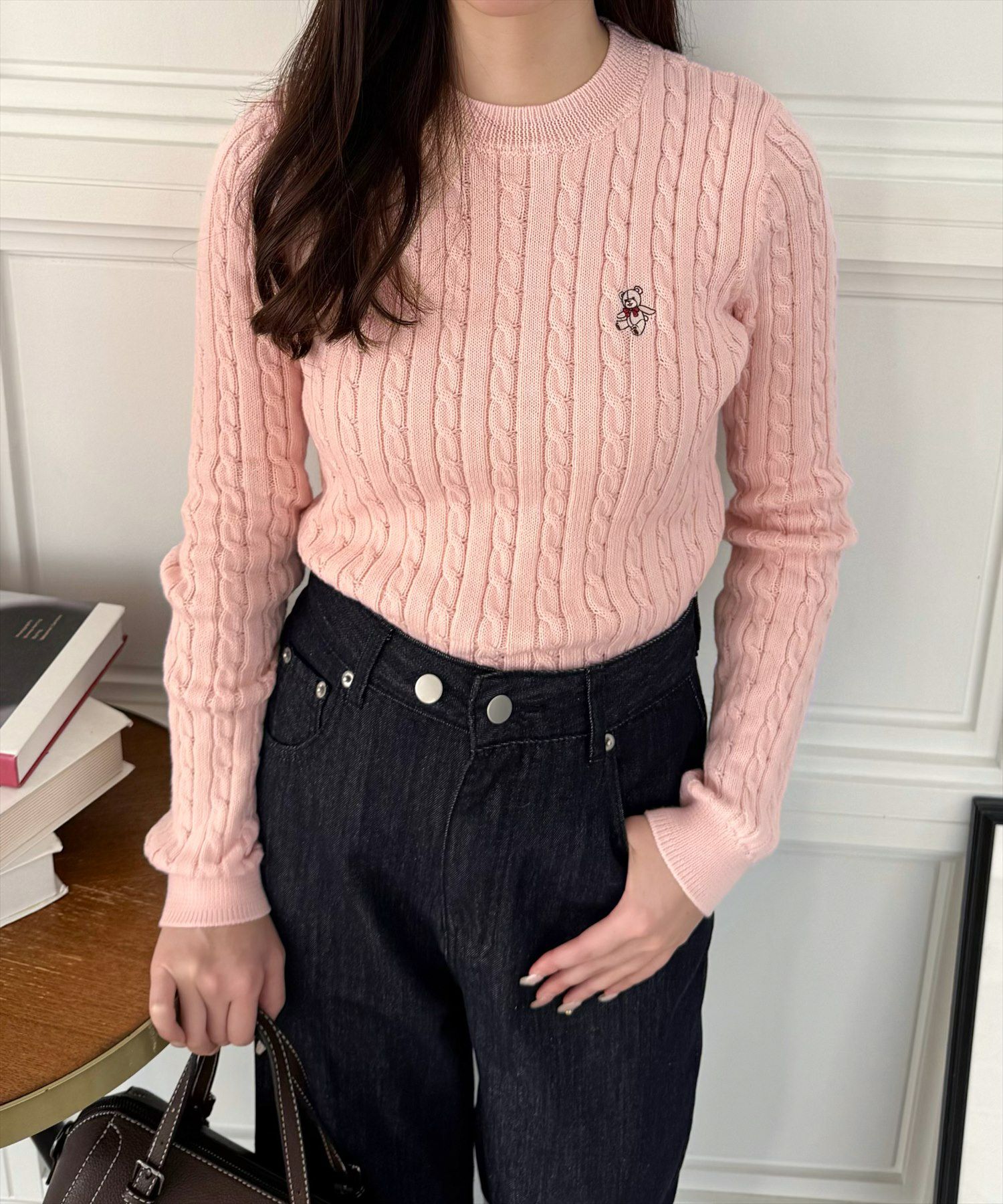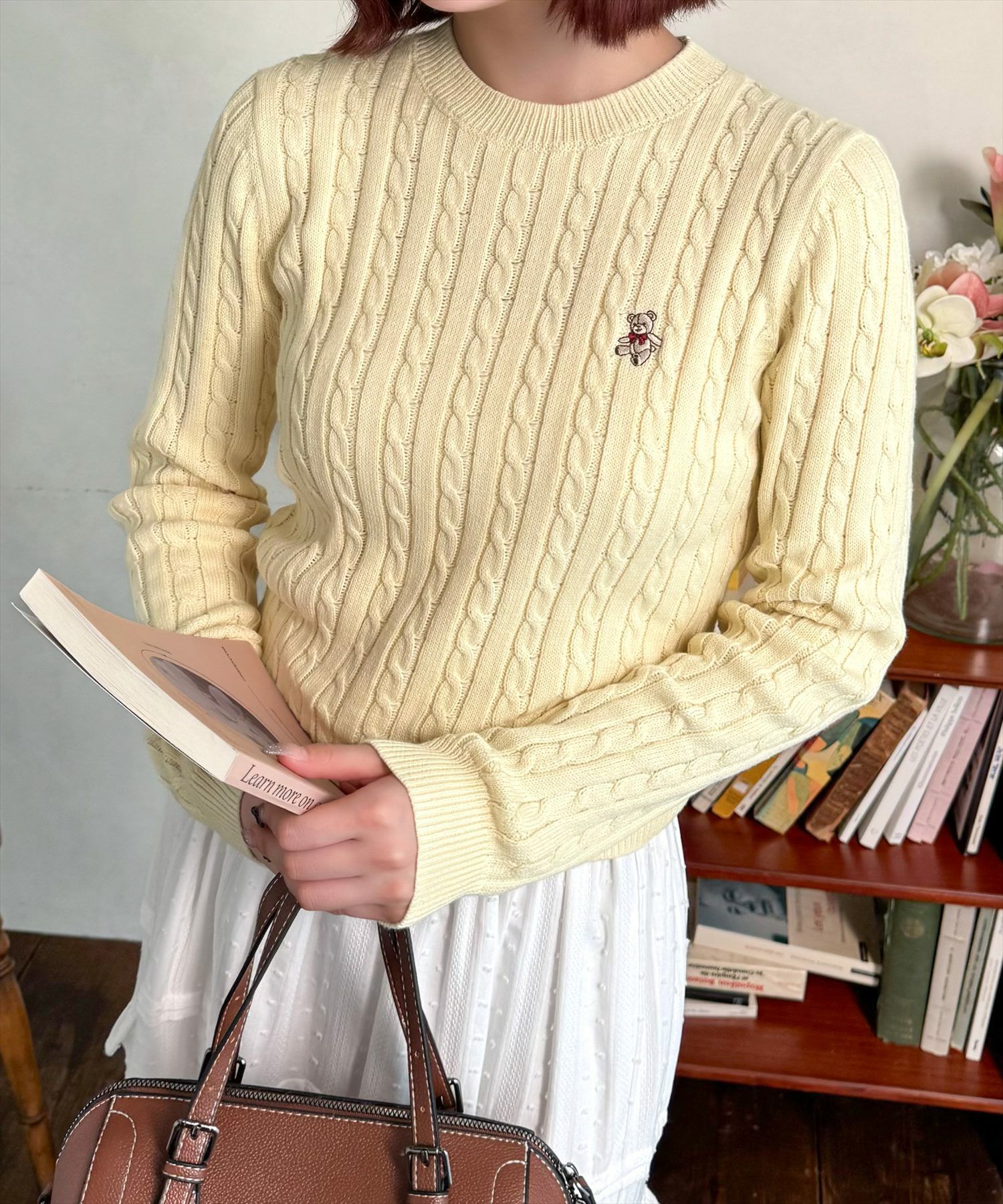 clear クマ刺繍総ケーブルニットトップス[CL9041/2]
