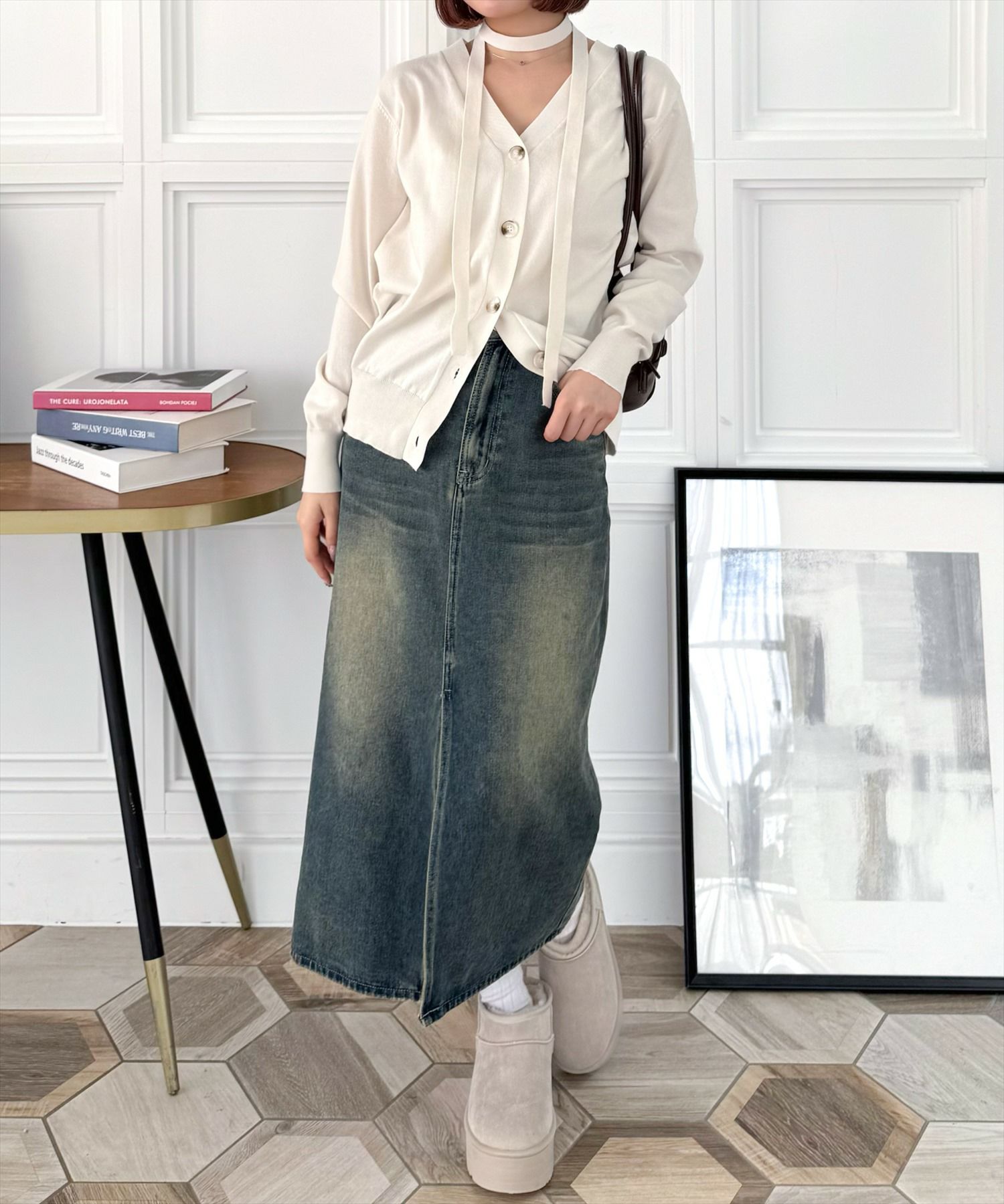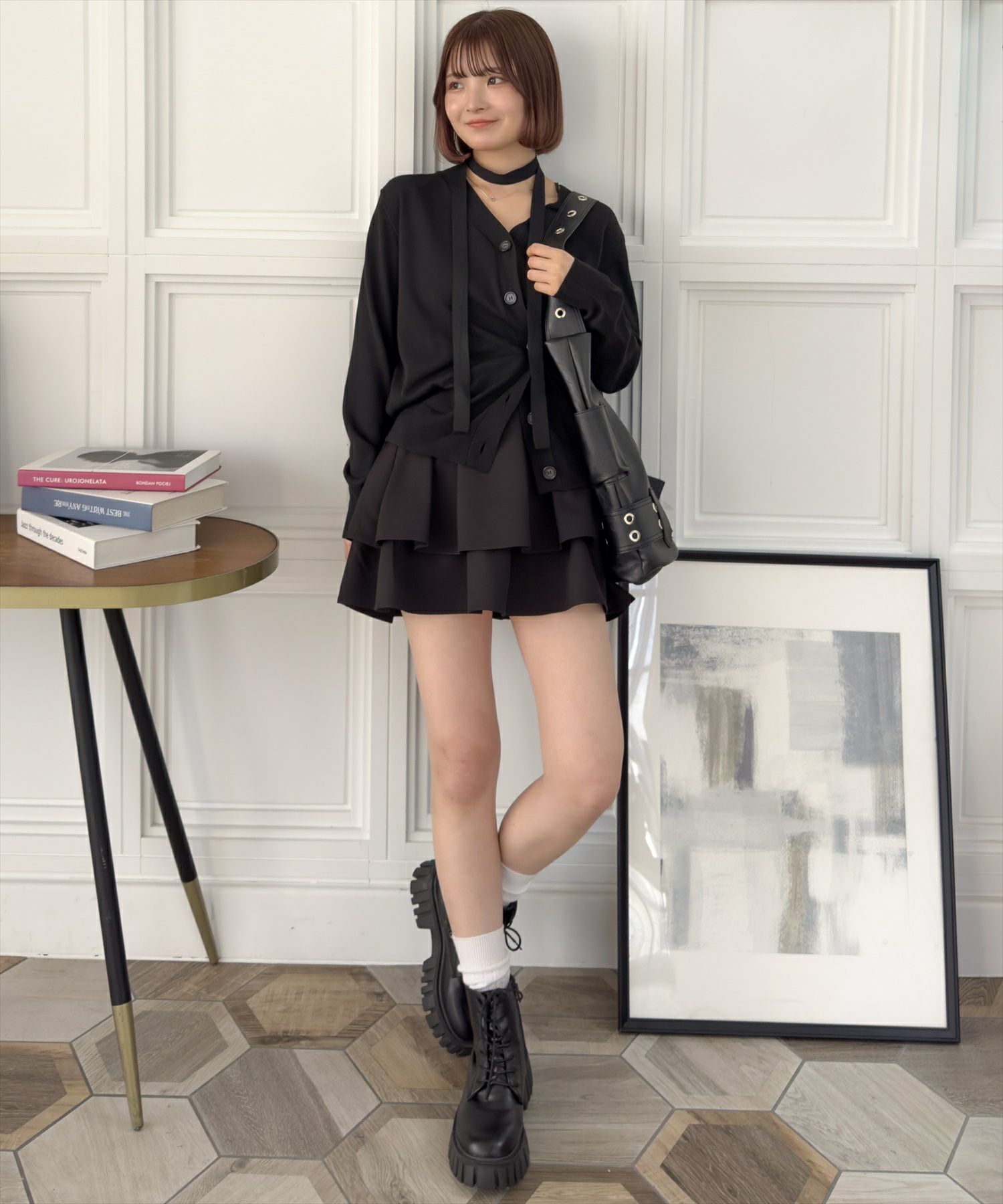 clear チョーカー付きアシンメトリーニットカーディガン[CL9019]