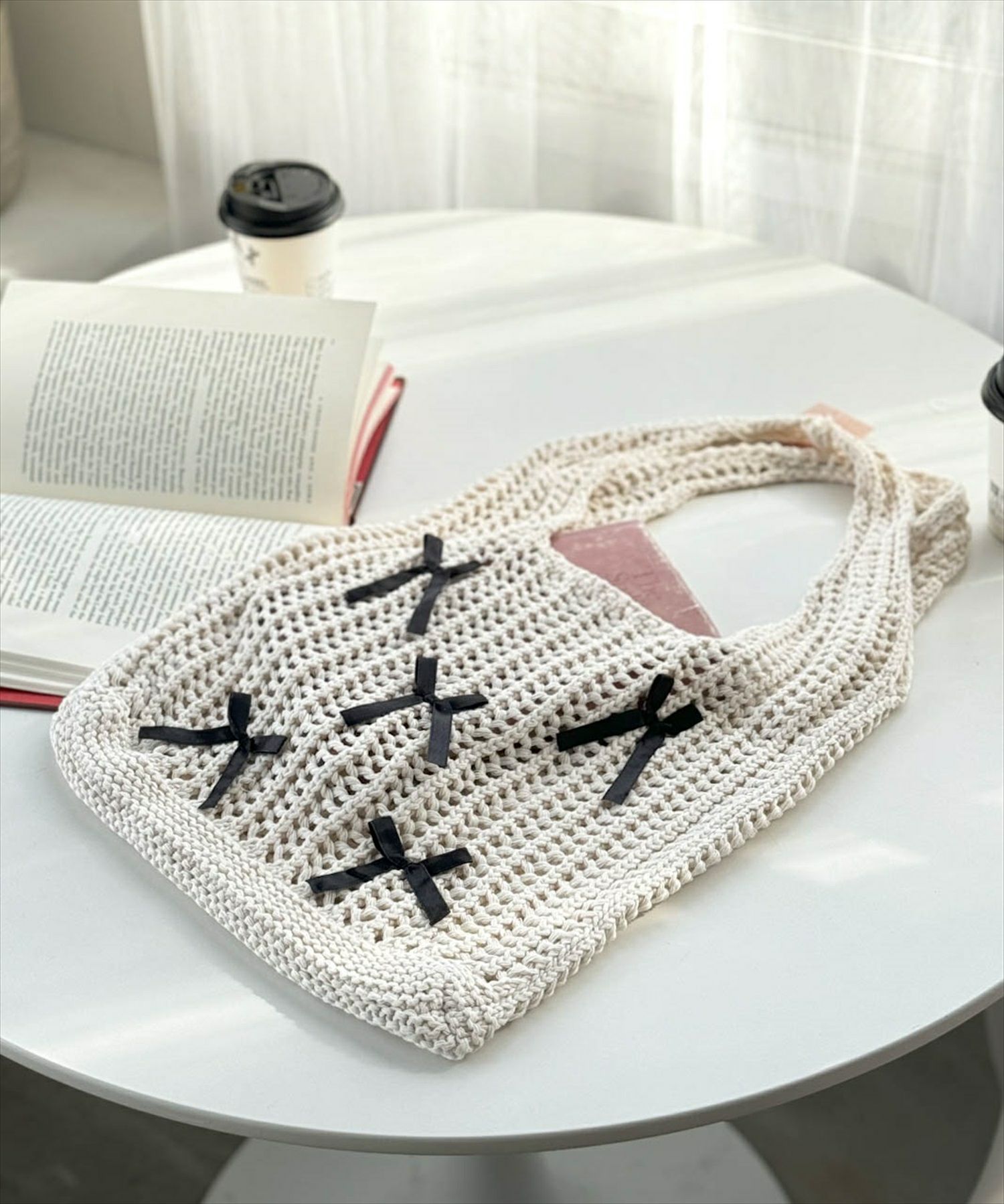 clear リボンモチーフニットトートバッグ[ZA0012]