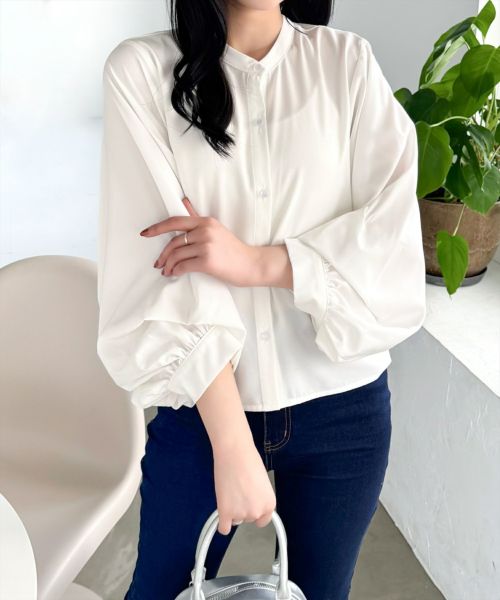 CLEAR BASIC 配色キャンディースリーブ長袖ブラウス[CL8952]