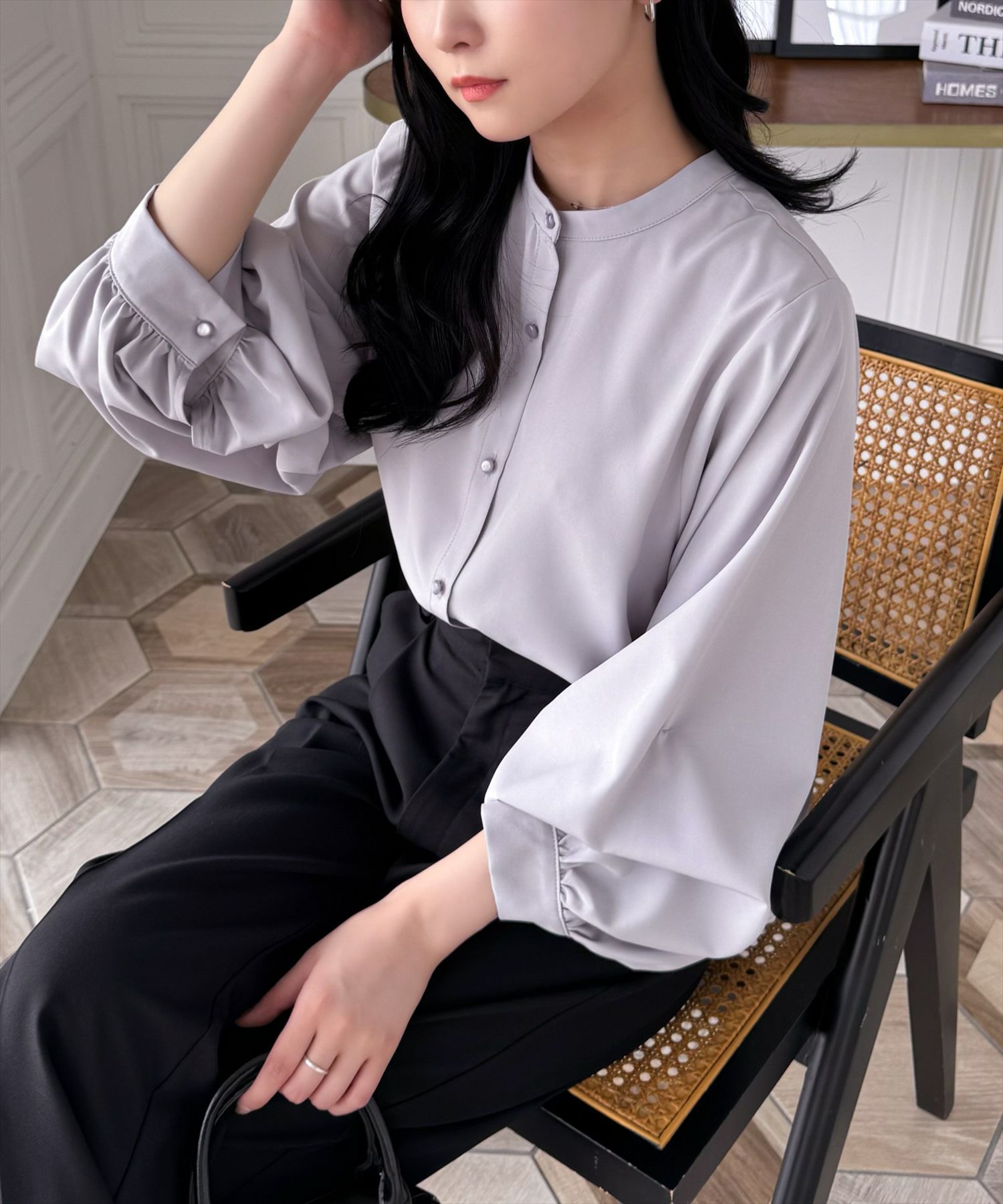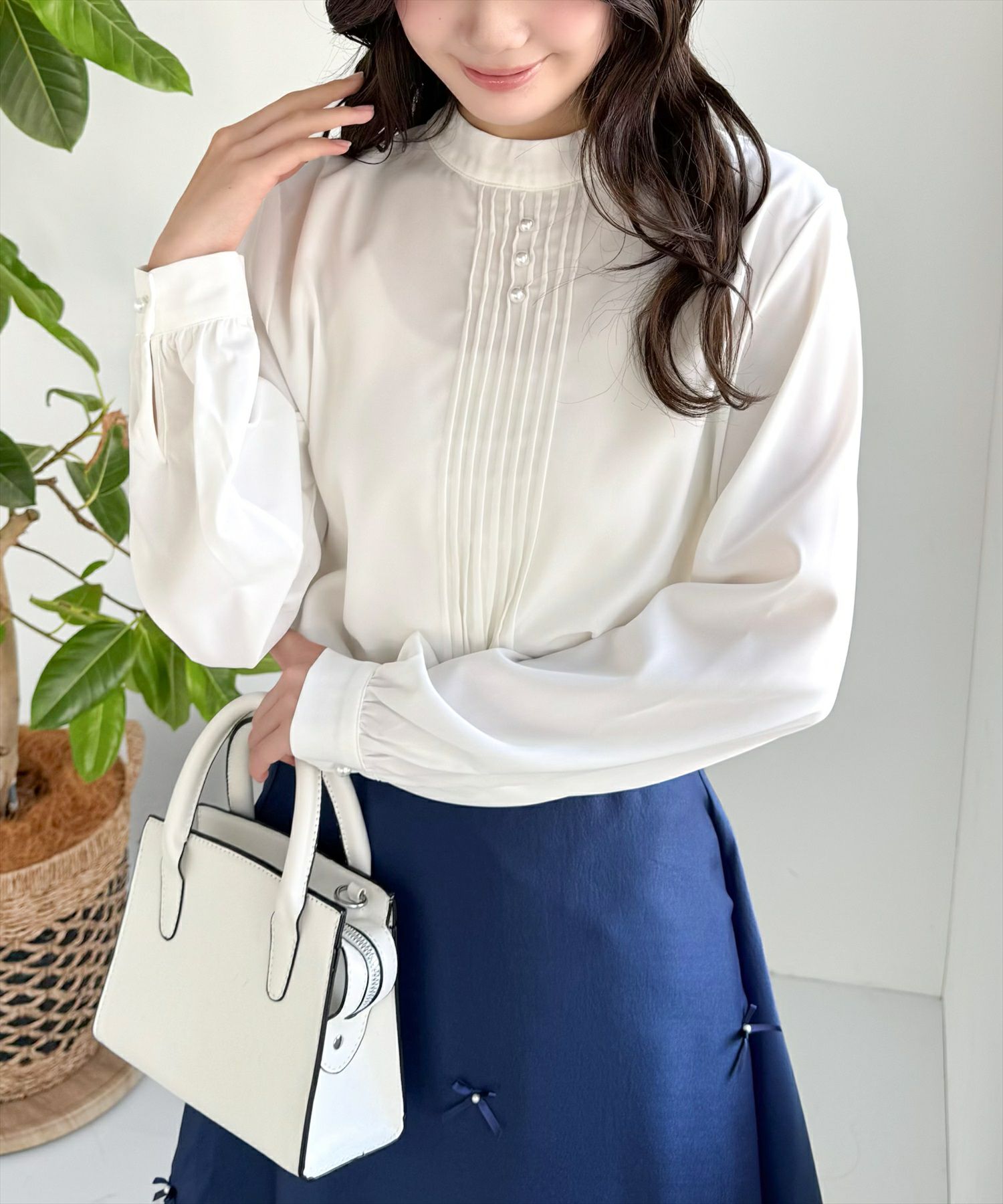 CLEAR BASIC パール付きピンタック長袖ブラウス[CL8988]