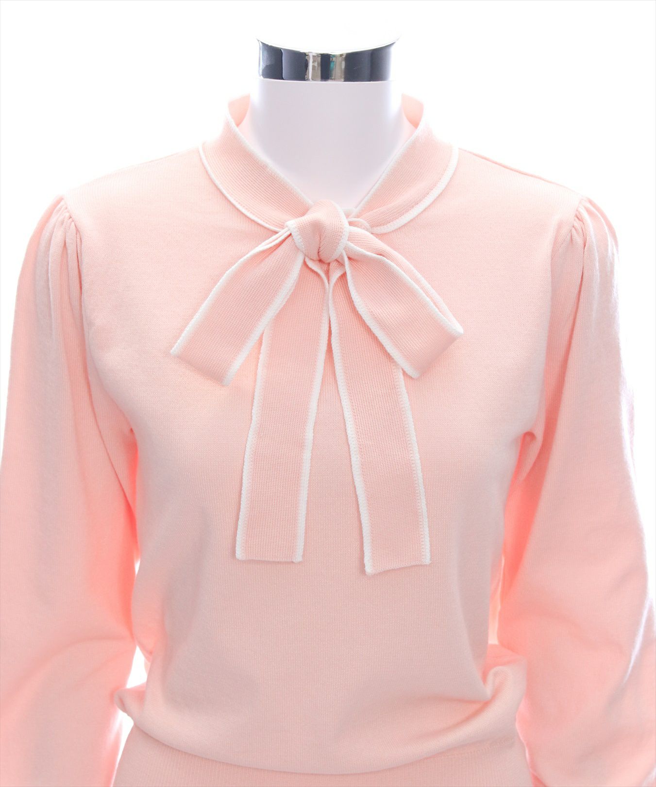 CLEAR BASIC 配色ボウタイニットトップス[CL8978]