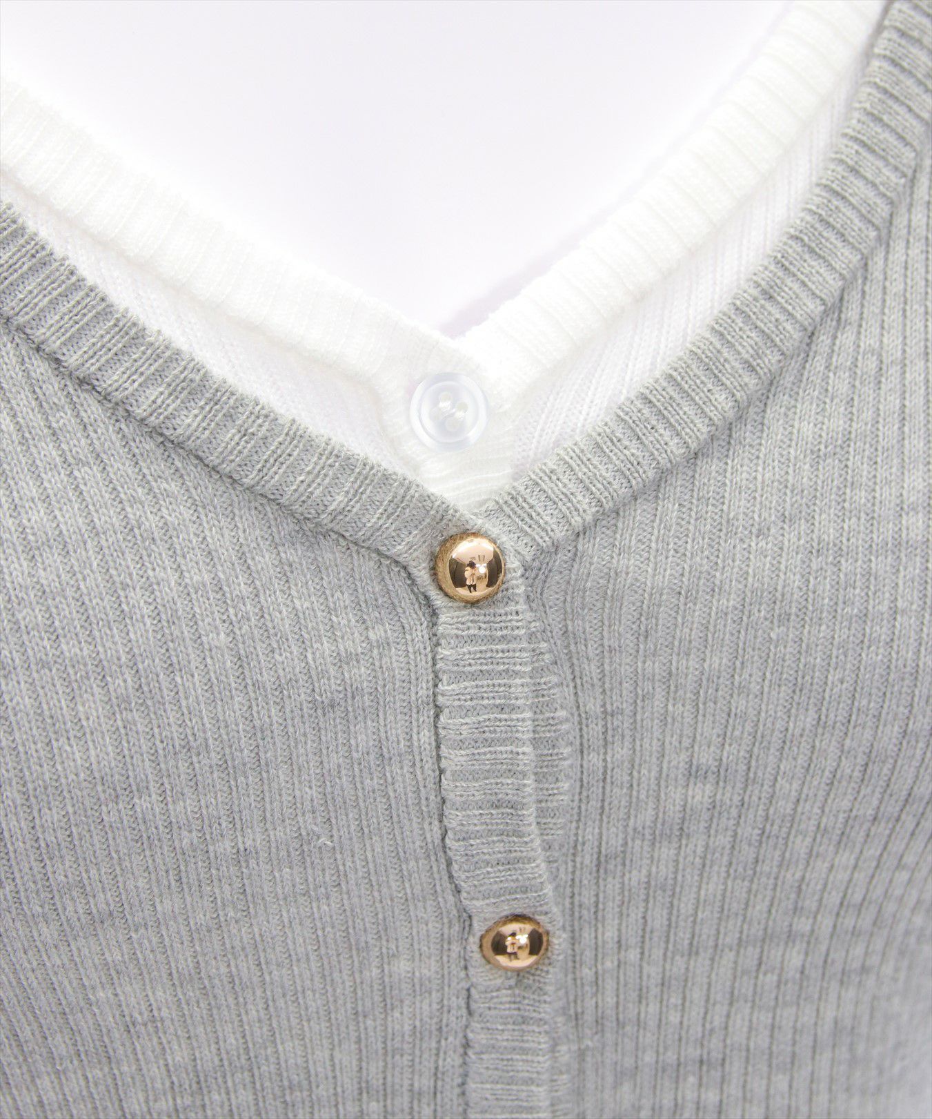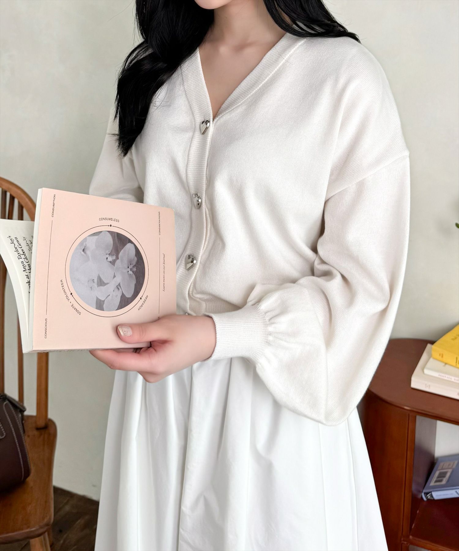 CLEAR BASIC 天竺編みハートボタンVネックニットカーディガン[CL9012]