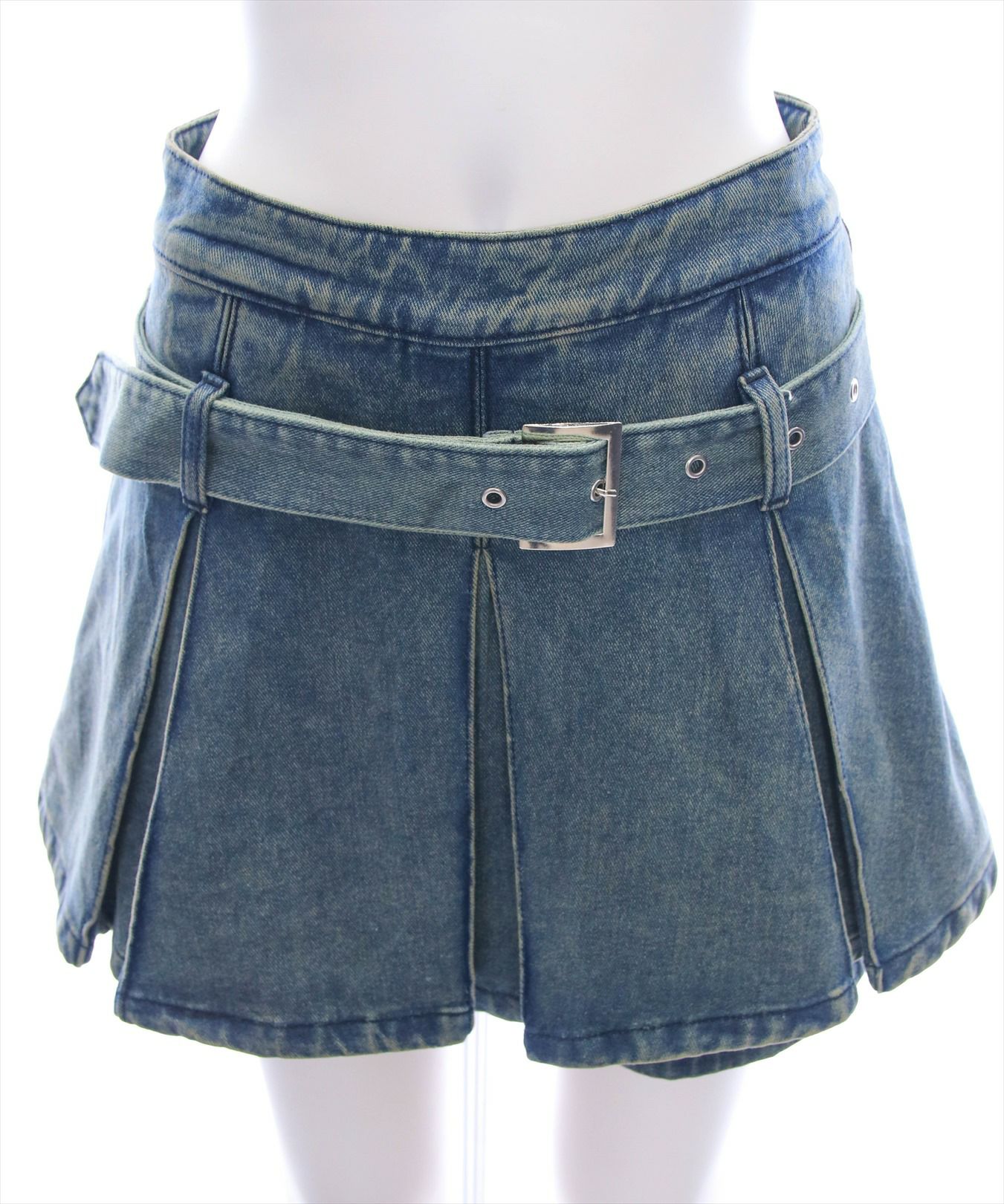 clear レイヤード風デニムプリーツミニスカート[CL8912]