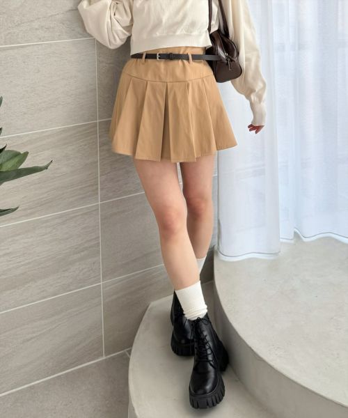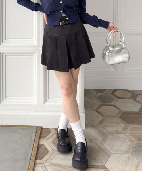 clear ベルト付きボックスプリーツミニスカート[CL8911]