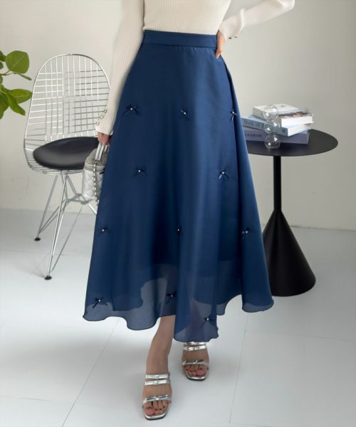 CLEAR BASIC リボン付きチュールフレアスカート[CL8994]