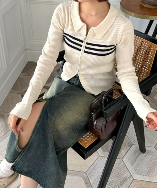 clear ダブルジップ長袖ニットトップス[CL9011]