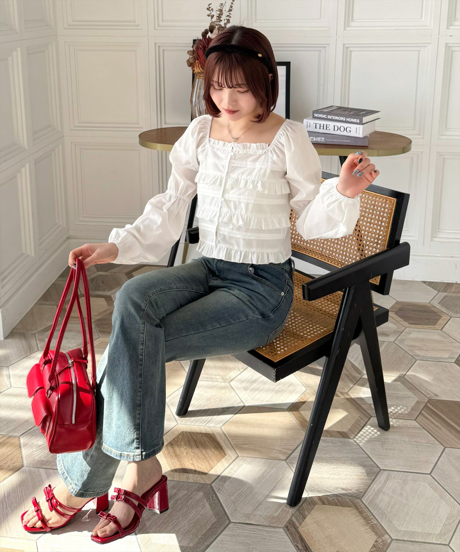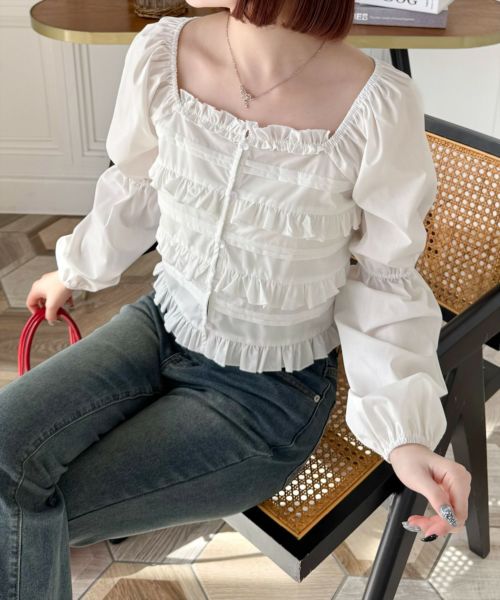 clear フロントフリルスクエアネックブラウス[CL8947]