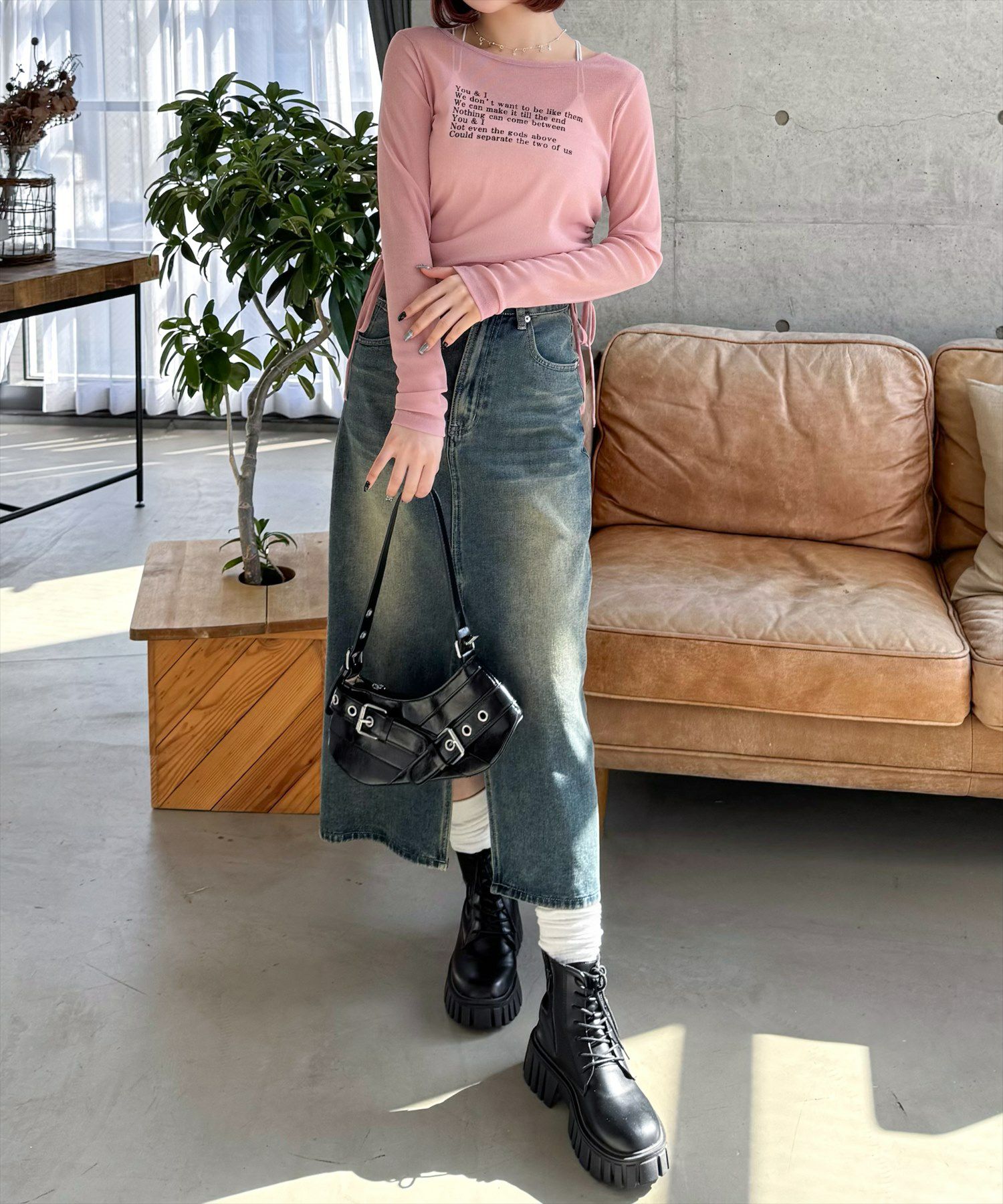 clear 袖口リボンメロウプチハイ長袖カットソートップス[CL8931]